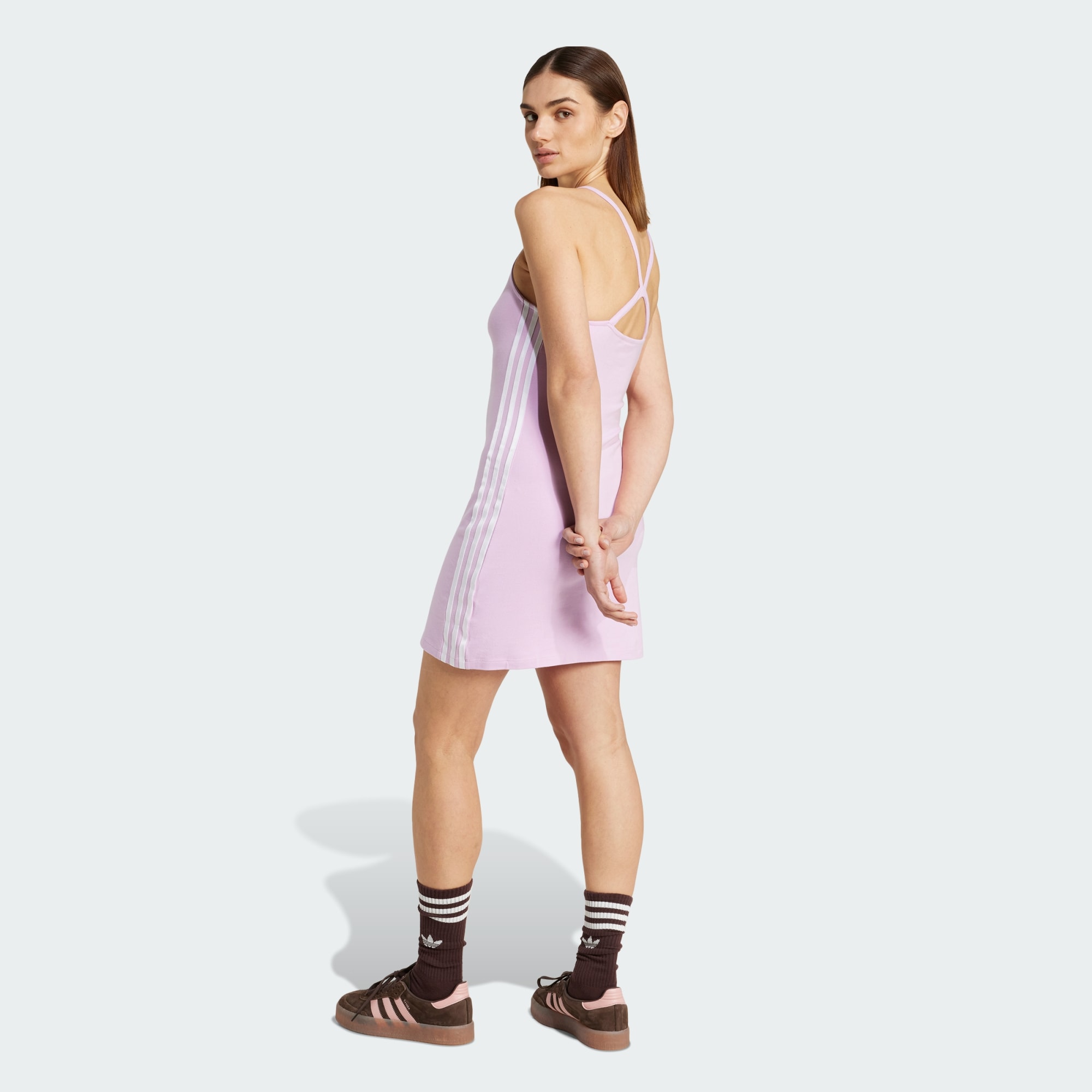 A tight-fitting mini dress with 3-Stripes style for a sporty look.
