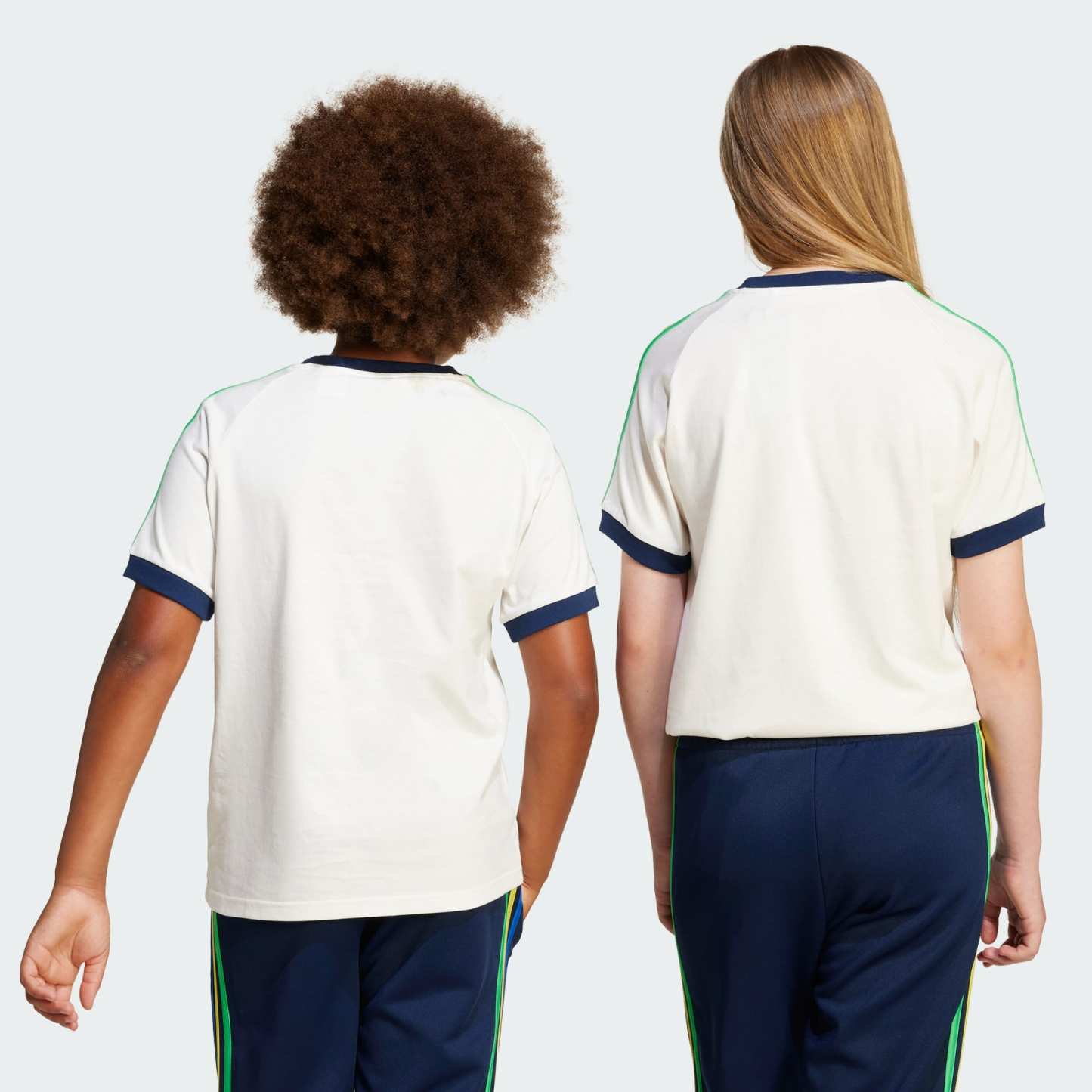 Inspired by our sporting heritage, this juniors' tee from adidas plays with vibrant colors and playful graphics. Staying true to our archives, we bring back tricolor 3-Stripes and an oversized retro-style adidas Originals print. The loose fit creates a casual look and feel.