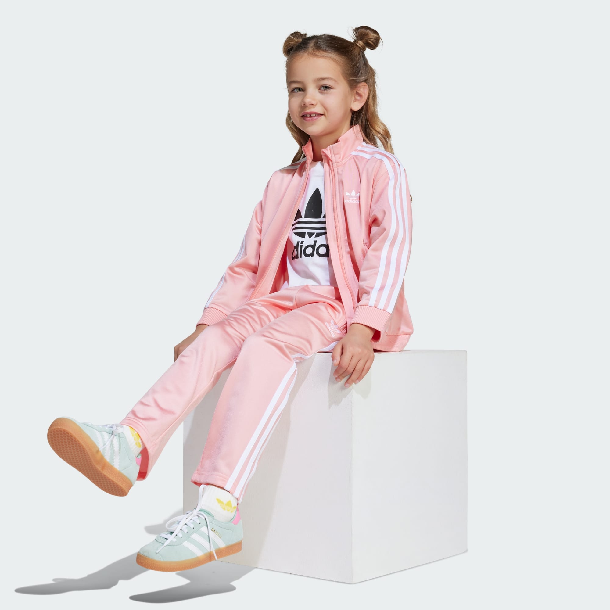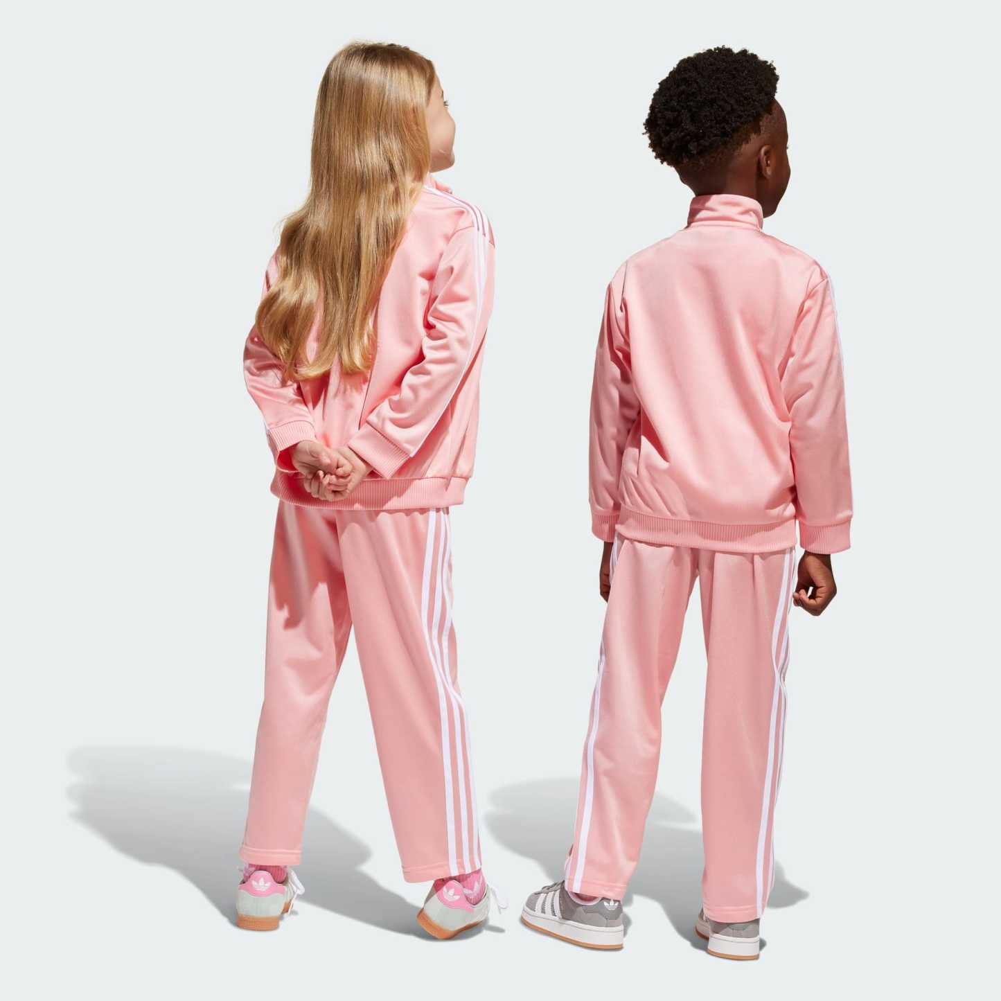 Your little one will be as bold as fire in this kids' iconic track suit. Inspired by adidas heritage yet fresh for today, it features 3-Stripes and a Trefoil logo on both the track top and pants. Ribbed details and a stand-up collar put the finishing touches on the classic silhouette. This product is made with 100% recycled materials. By reusing materials that have already been created, we help to reduce waste and our reliance on finite resources and reduce the footprint of the products we make.