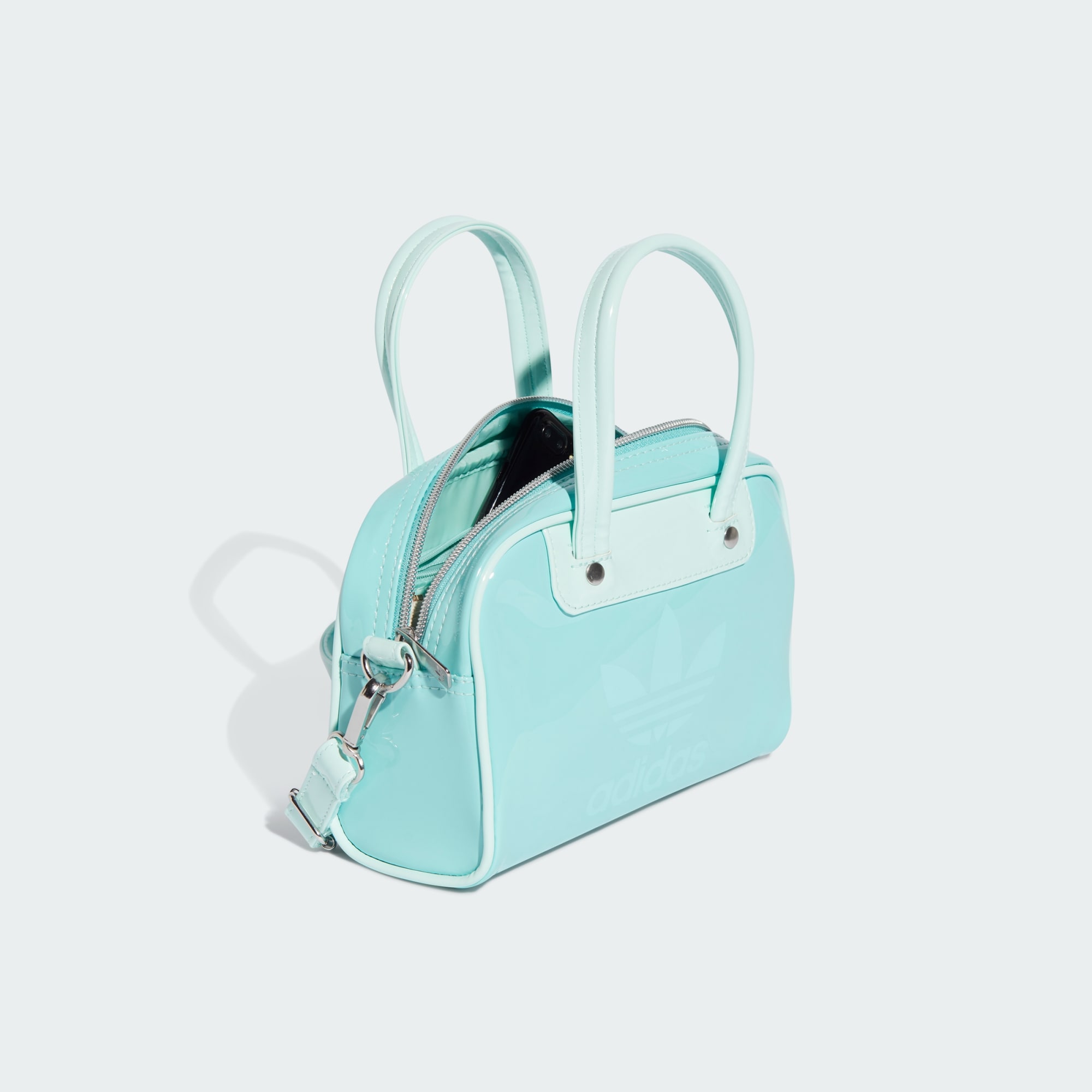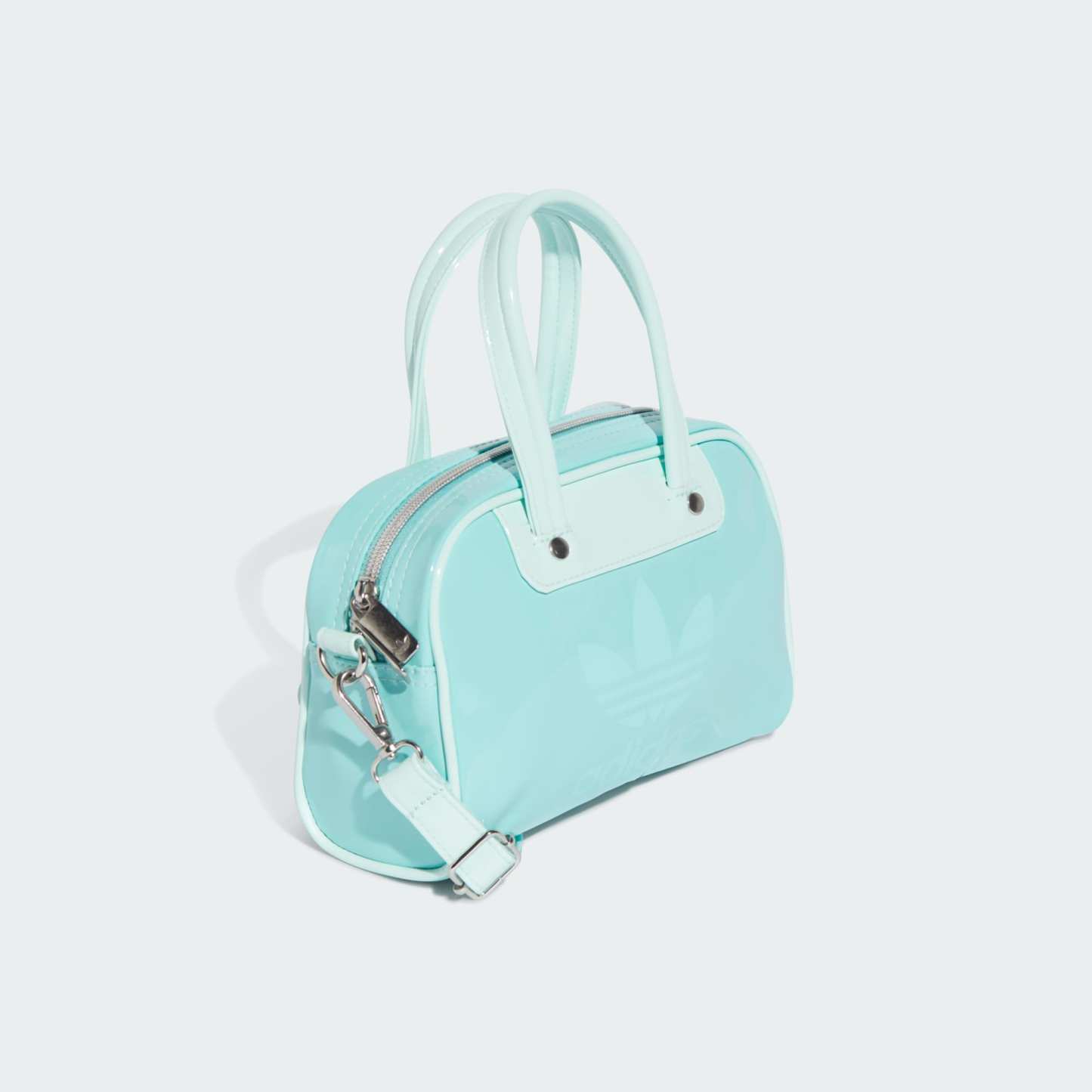 This retro-inspired adidas Adicolor mini bowling bag is anything but basic. Made from imitation leather with a patent sheen, it holds all your essentials. Metal accents and piping give it a retro vibe. Sling it over your shoulder or carry it by the handles. Because options.
