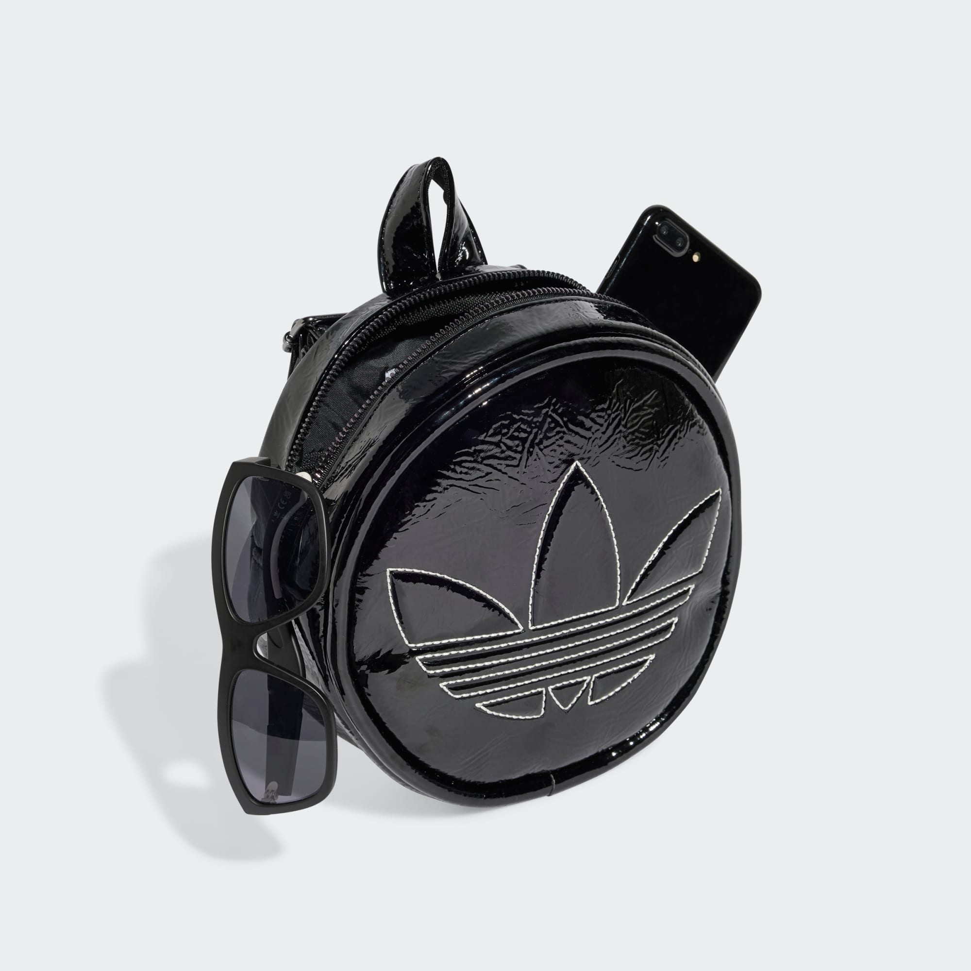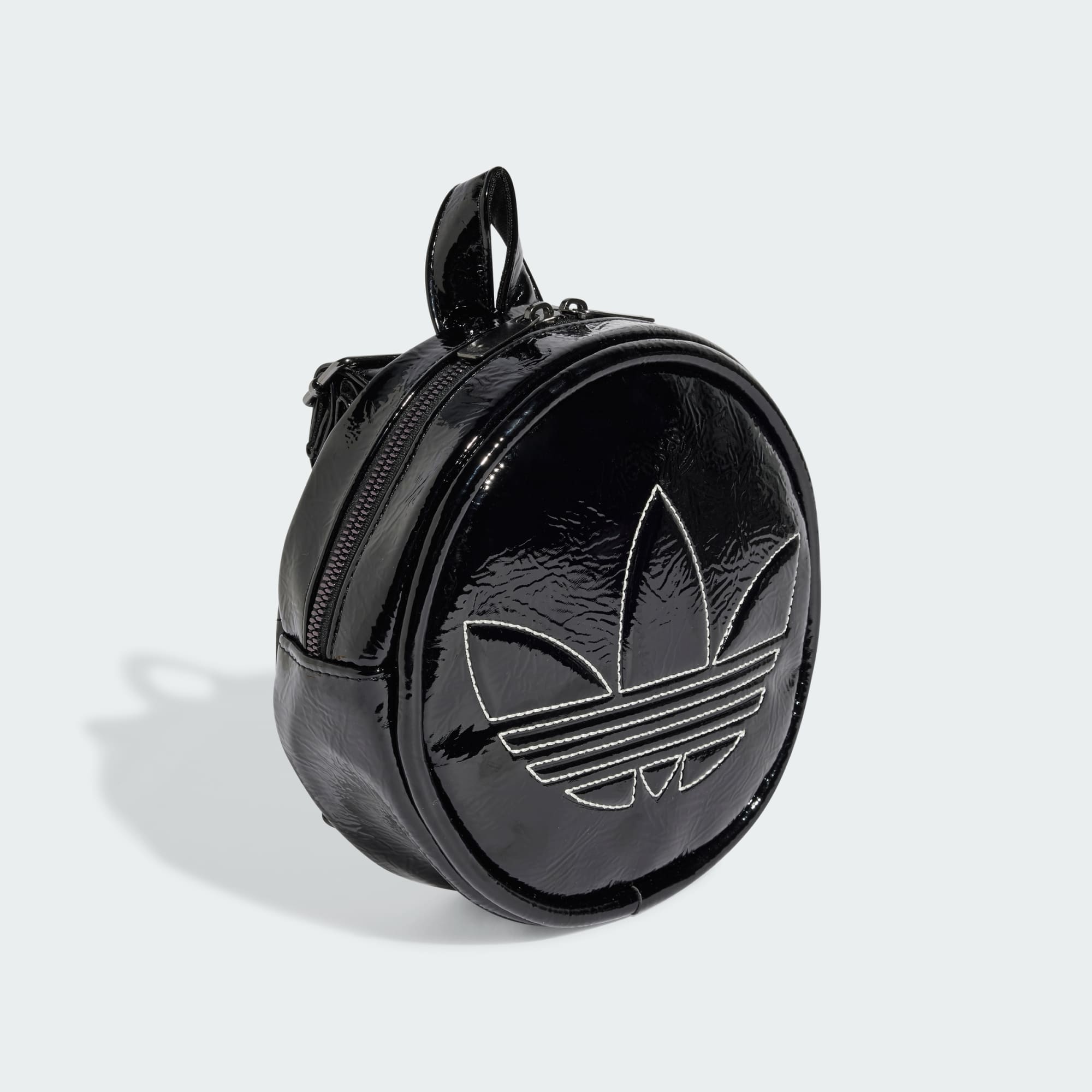 A round adidas Adicolor backpack with an eye-catching contrast-color Trefoil.