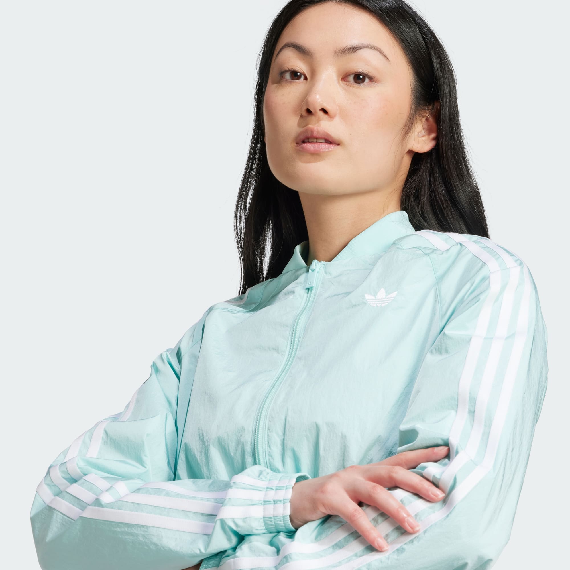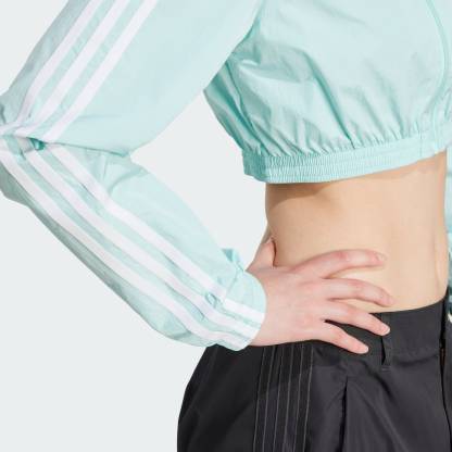 Channel the '00s in this cropped adidas track top. The crinkle fabric and cut lines take inspiration from vintage soccer shirts. With a slim fit and a mix of matte and shiny finishes, this top is all about sporty style. Pair it with high-waisted jeans or joggers and your favorite sneakers for a look that's as bold as it is retro.This product is made with 100% recycled materials. By reusing materials that have already been created, we help to reduce waste and our reliance on finite resources and reduce the footprint of the products we make.