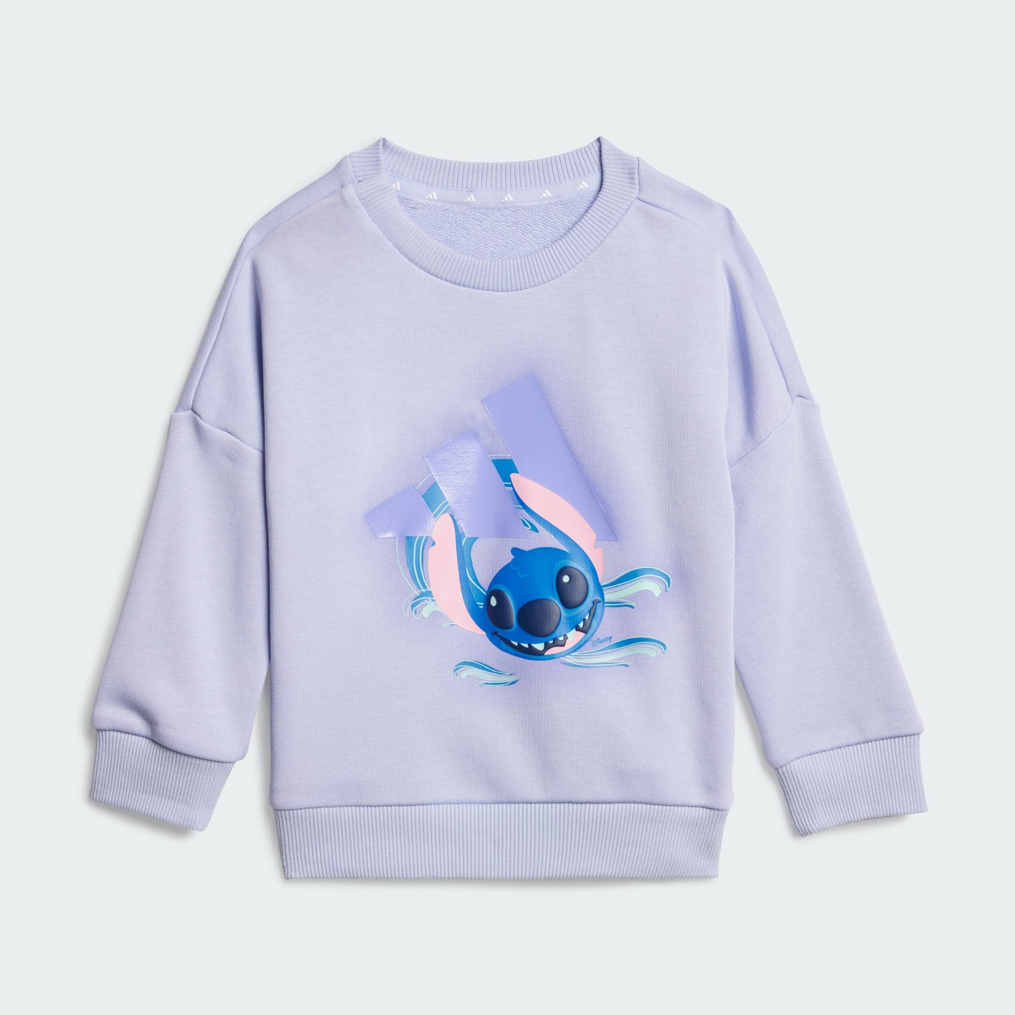 The perfect set for little ones with big imaginations. This adidas joggers and sweatshirt combo will keep your infant comfortable and ready for adventure. Stitch from Disney's "Lilo & Stitch" graphics inspire fun in every activity. Ribbed cuffs and a soft cotton blend French terry make this set cosy for all-day play.