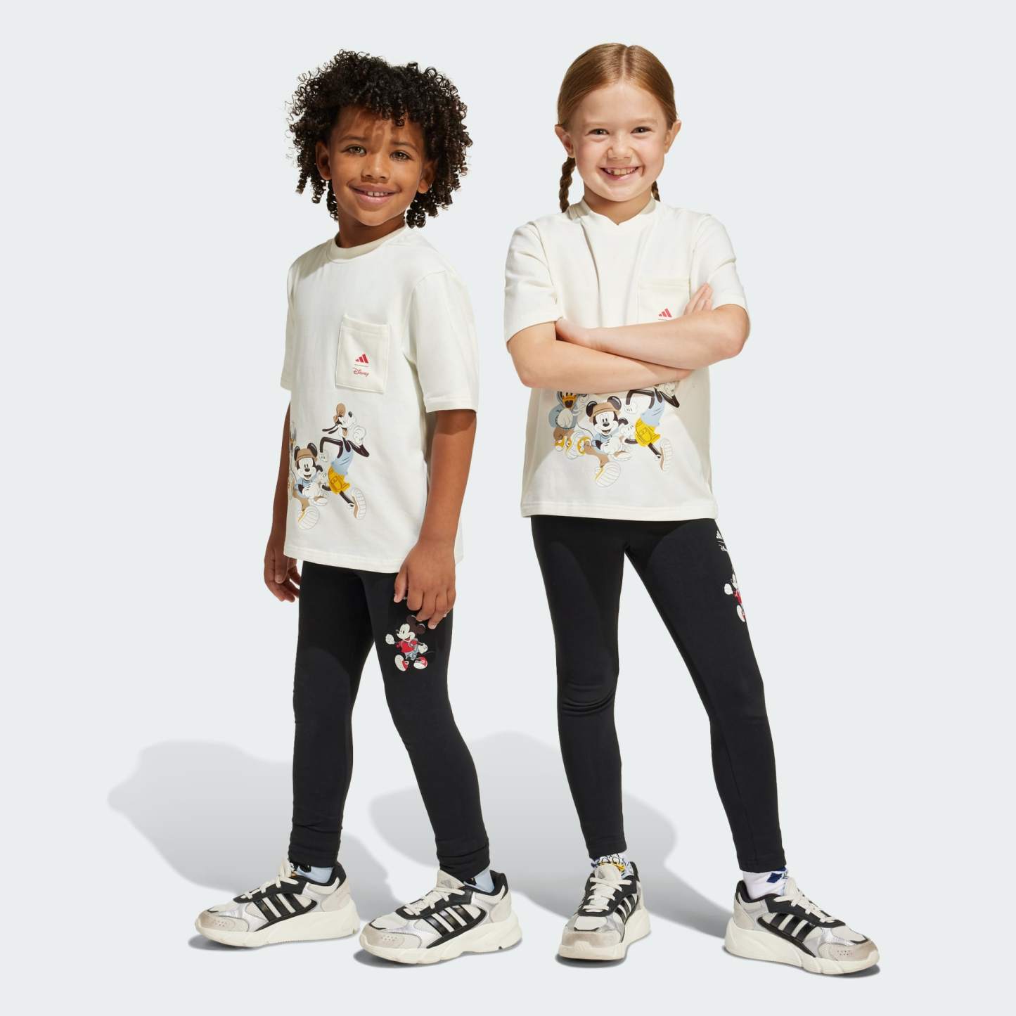 Disney's Mickey Mouse makes every adventure more fun. In these kids' adidas leggings, young fans can bring him along on all their everyday outings. The stretchy build makes hopping, skipping and twirling extra comfortable. A Mickey graphic with sparkle effect adds a playful style.
