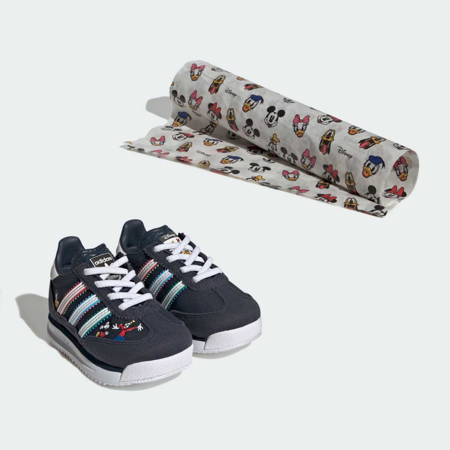 Disney's Donald Duck and Minnie Mouse are along for the ride in these kids' SL 72 shoes from adidas. The two characters pop up on the sides, along with signature 3-Stripes framed with extra colour. An EVA midsole keeps each movement light and lively, while a rubber toe bumper elevates durability as little ones explore.