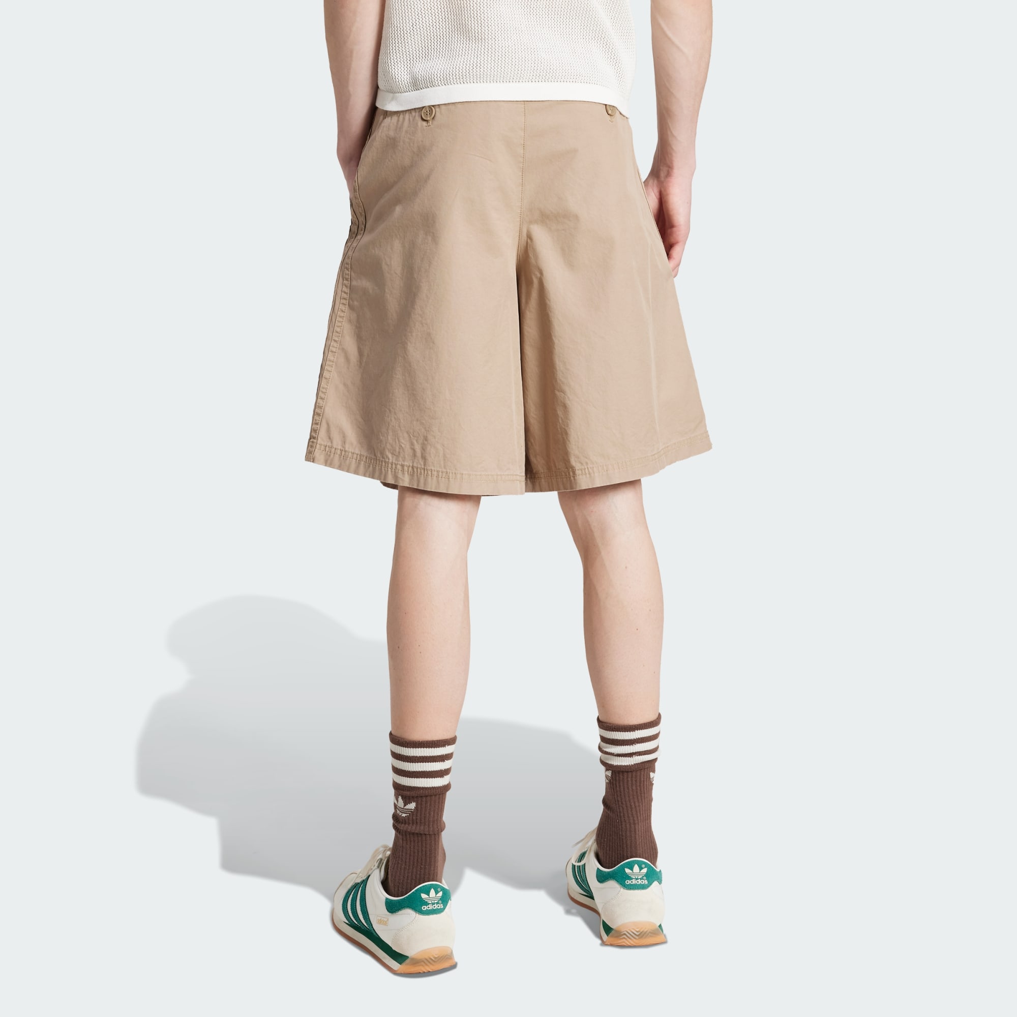 These adidas Originals shorts are a little longer and a little wider than the usual. A classic Bermuda short silhouette, they're crafted from lightweight woven material in a natural colorway. An adidas Trefoil logo subtly details the leg.