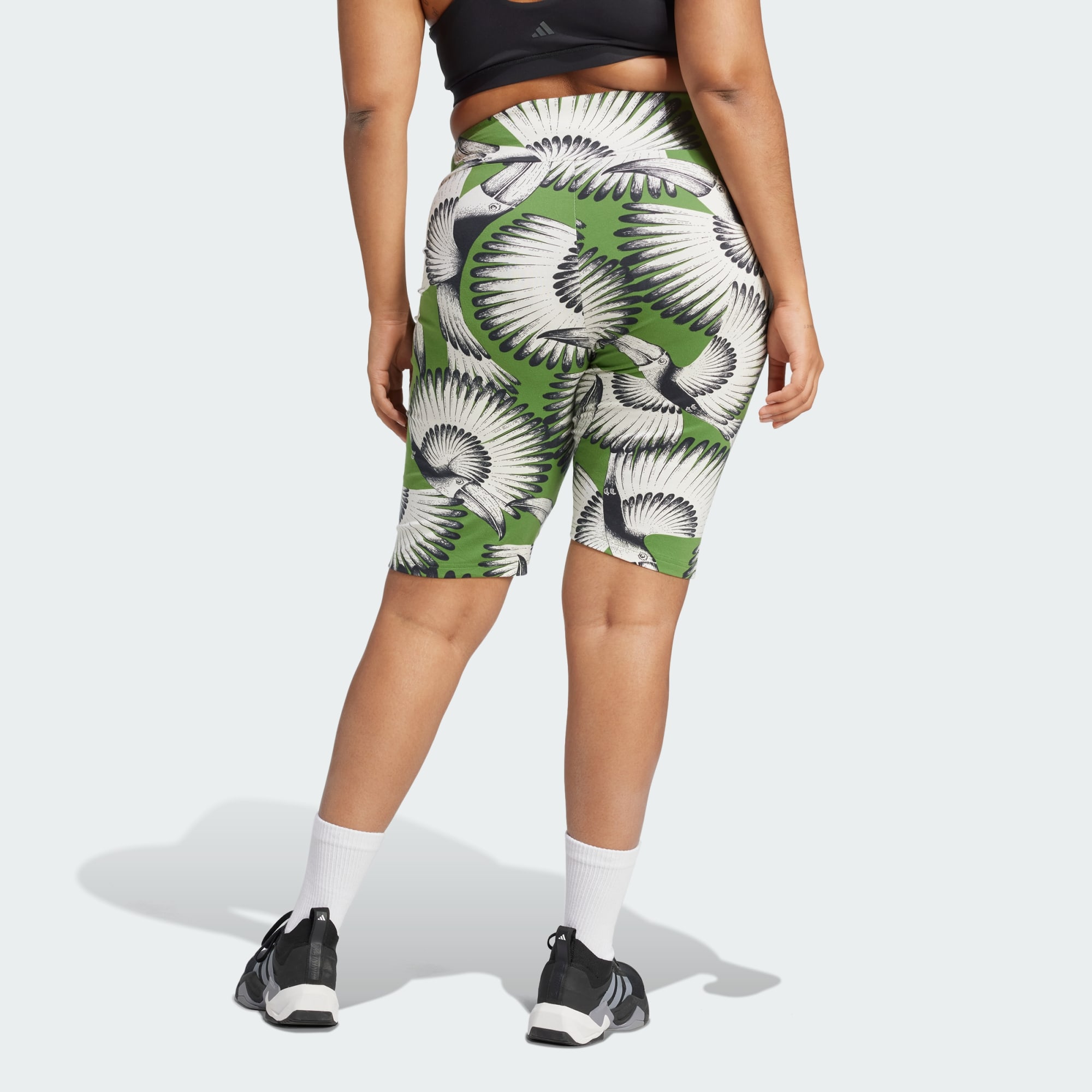 Inspired by the wild beauty of the desert oasis, these adidas bike shorts fuse function with flair. The "Oasis Night" print combines FARM's signature tropical motifs and animal prints with an attention-grabbing ikat design. Made from soft, stretchy single jersey fabric, these shorts move with you during training but still look great for everyday wear. So whether you're headed to a yoga class or out and about, let these shorts transport you to an exotic oasis of style and comfort.