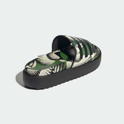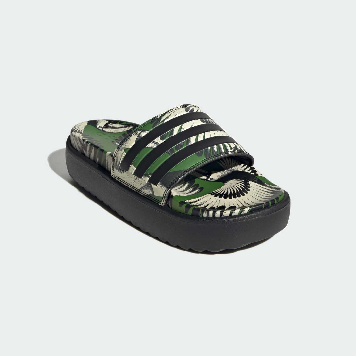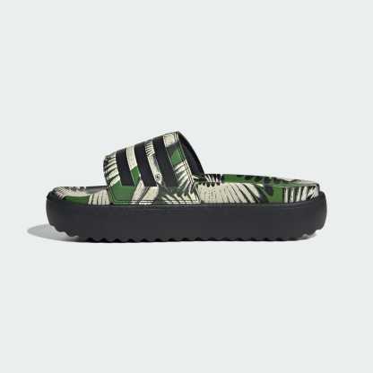 Slides that make a statement 閳?and an oasis. These adidas Adilette Platform Slides are the perfect blend of comfort and style. The lightweight yet durable EVA platform sole provides all-day cushioning while the slip-on design allows for easy on and off. Pair these vibrant slides with a sundress for a casual warm-weather look or jeans and a t-shirt for an athleisure vibe. Created in collaboration with Brazilian design label FARM Rio, these slides embody a fun, colorful spirit that will elevate any outfit.