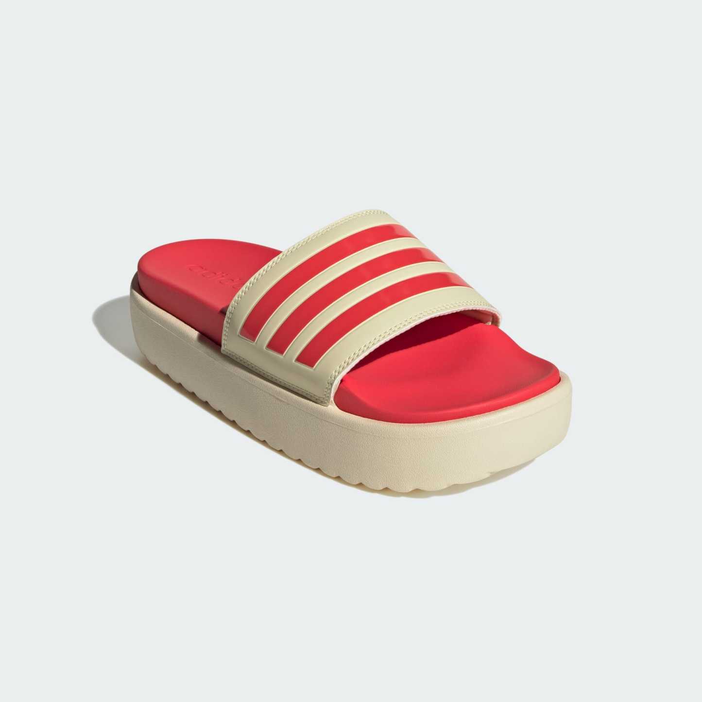 The coolest way to show off your pedicure. These adidas platform slides look at home by the pool and in the city with 3-Stripes wrapped around the smooth bandage uppers. These sandals have a contoured footbed and a cushioned EVA outsole for maximum comfort.