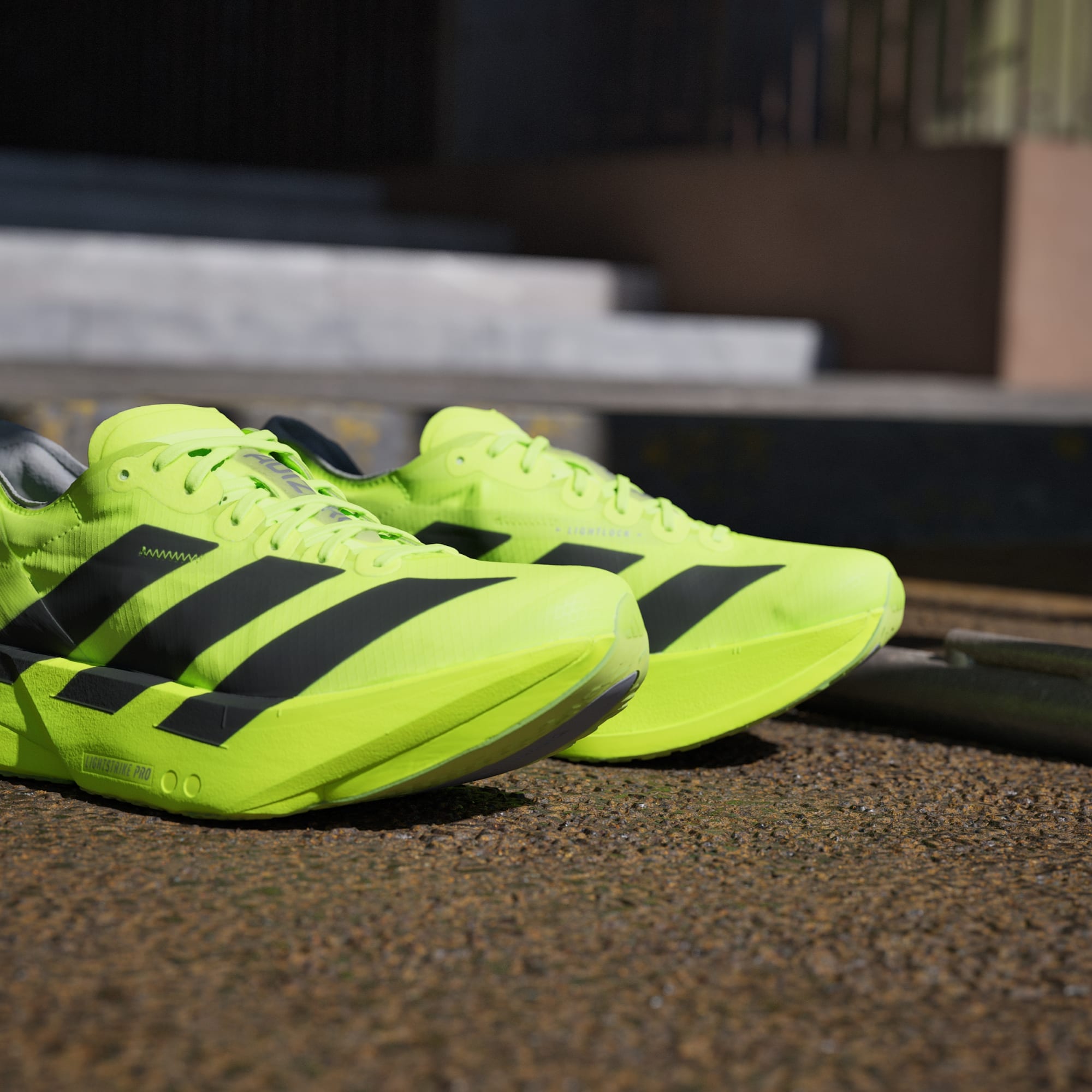 Proven to be the world's most winning shoe, the Adizero Adios Pro line is the pinnacle of Adizero Racing shoes. The Adios Pro 4 is made for fast runners who want to experience faster, with enhanced features designed to optimize running efficiency. Our carbon-infused ENERGYRODS 2.0 provide a seamless transition from heel to toe for a snappy, efficient stride. In the midsole, a new rocker point offers improved running economy. A double layer of our best-in-class ultralight LIGHTSTRIKE PRO ensures cushioning for every quick stride you take, helping you maintain energy over the long term. The shoe rides on an outsole built with Continental邃「 rubber for a no-slip transition during toe-off, as well as LIGHTTRAXION, designed to reduce weight without sacrificing grip.
