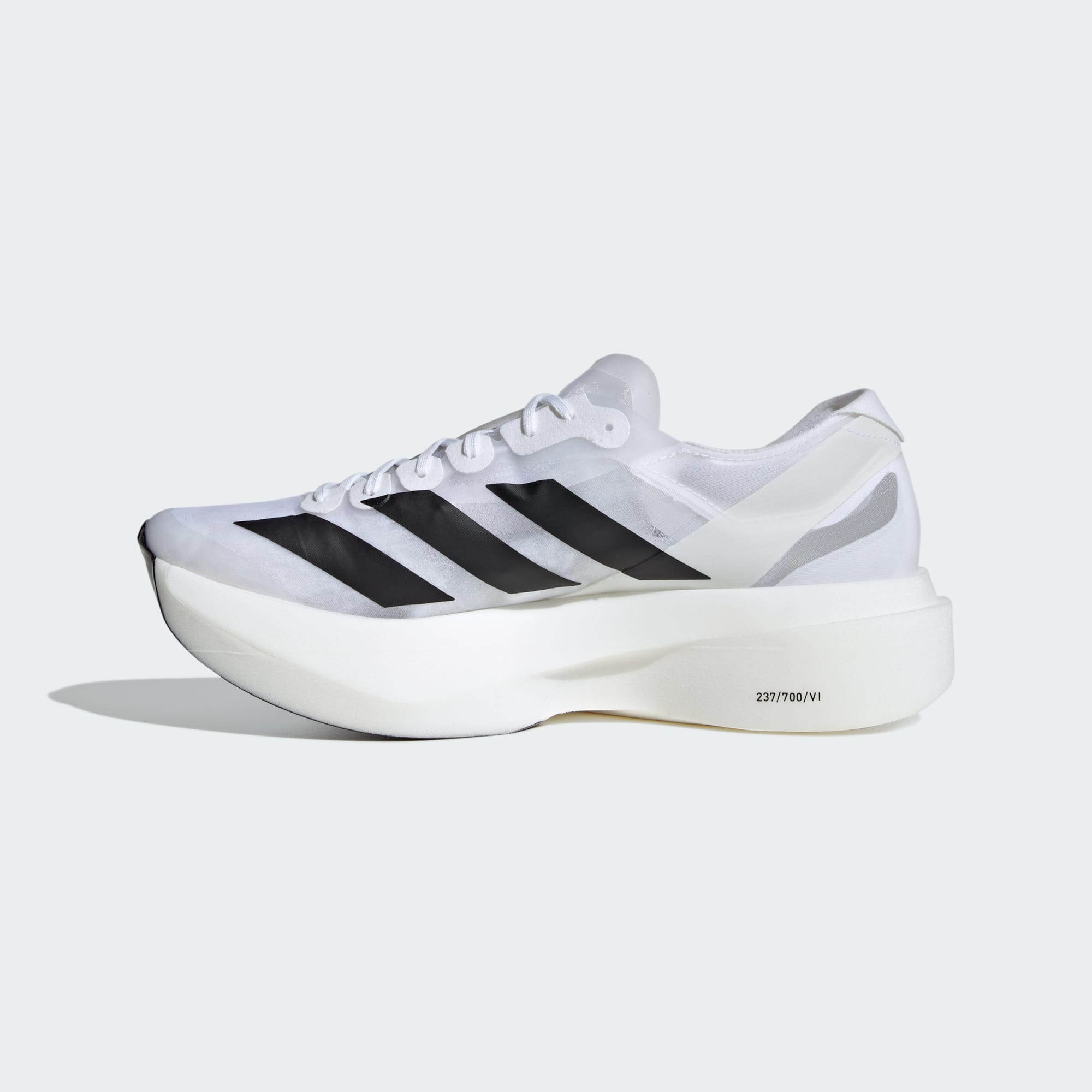 Astonishingly light. Shamelessly fast. The adidas Adizero Adios Pro Evo 1 is a new class of race shoe, designed to help ambitious marathon runners leave it all on the course. It's 40% lighter than any race shoe we've created, weighing in at just 4.87 ounces of pure innovation. Lightstrike Pro foam is paired with cutting-edge outsole technology, featherlight mesh and a first-of-its-kind forefoot rocker that's lab-tested to improve running economy. The Adizero Adios Pro Evo 1 is the future of running, and it's ready to race.