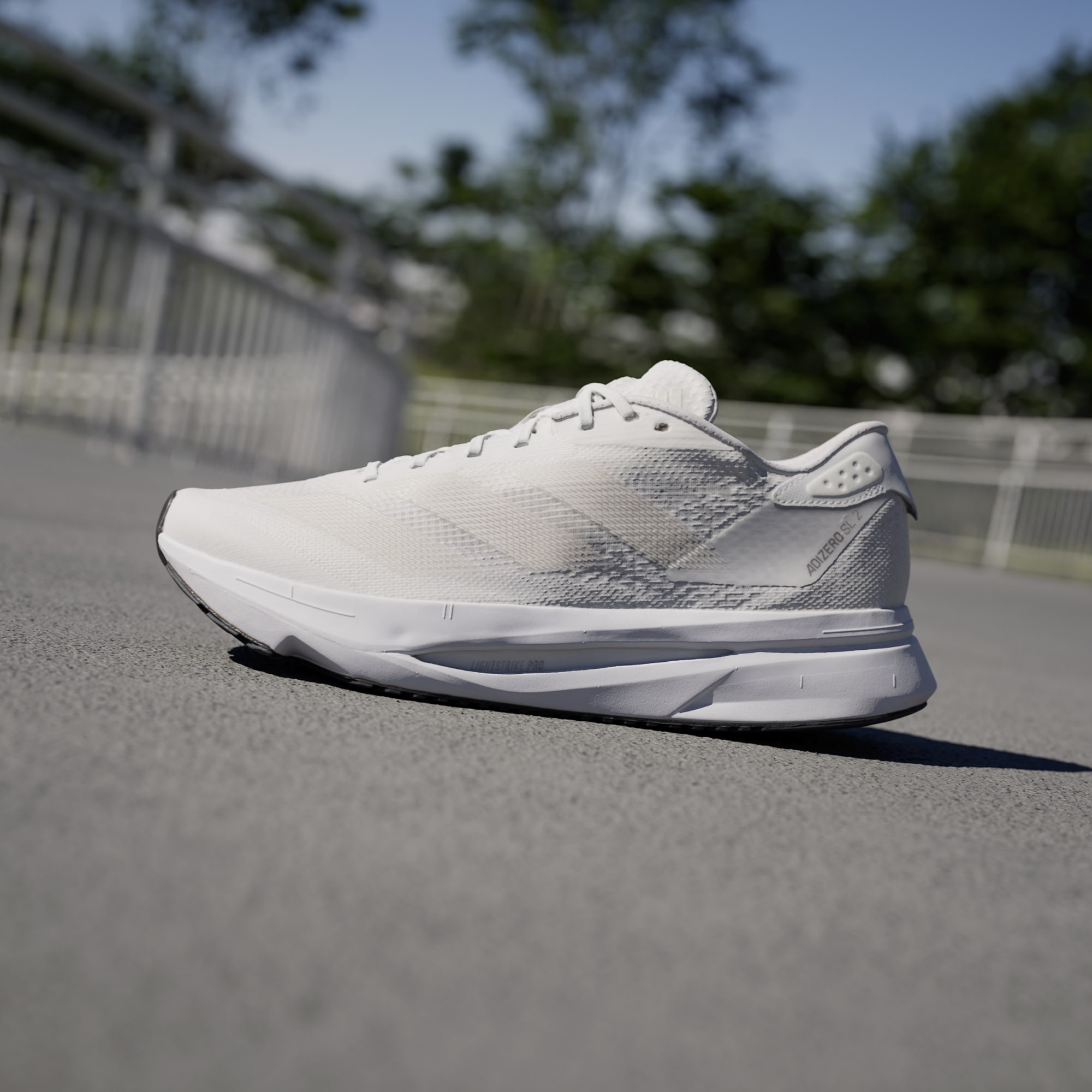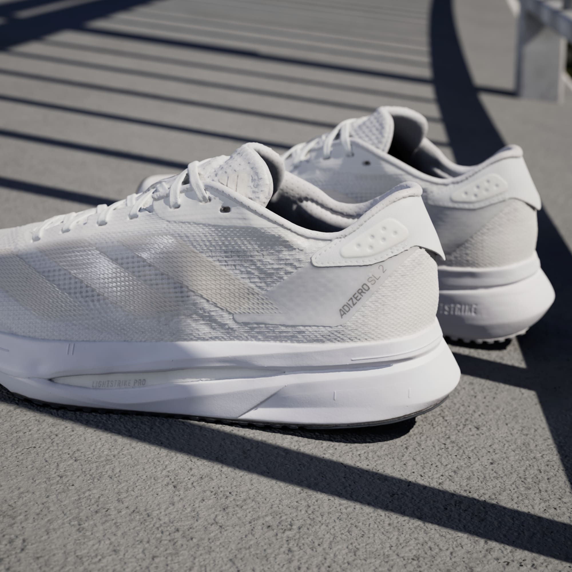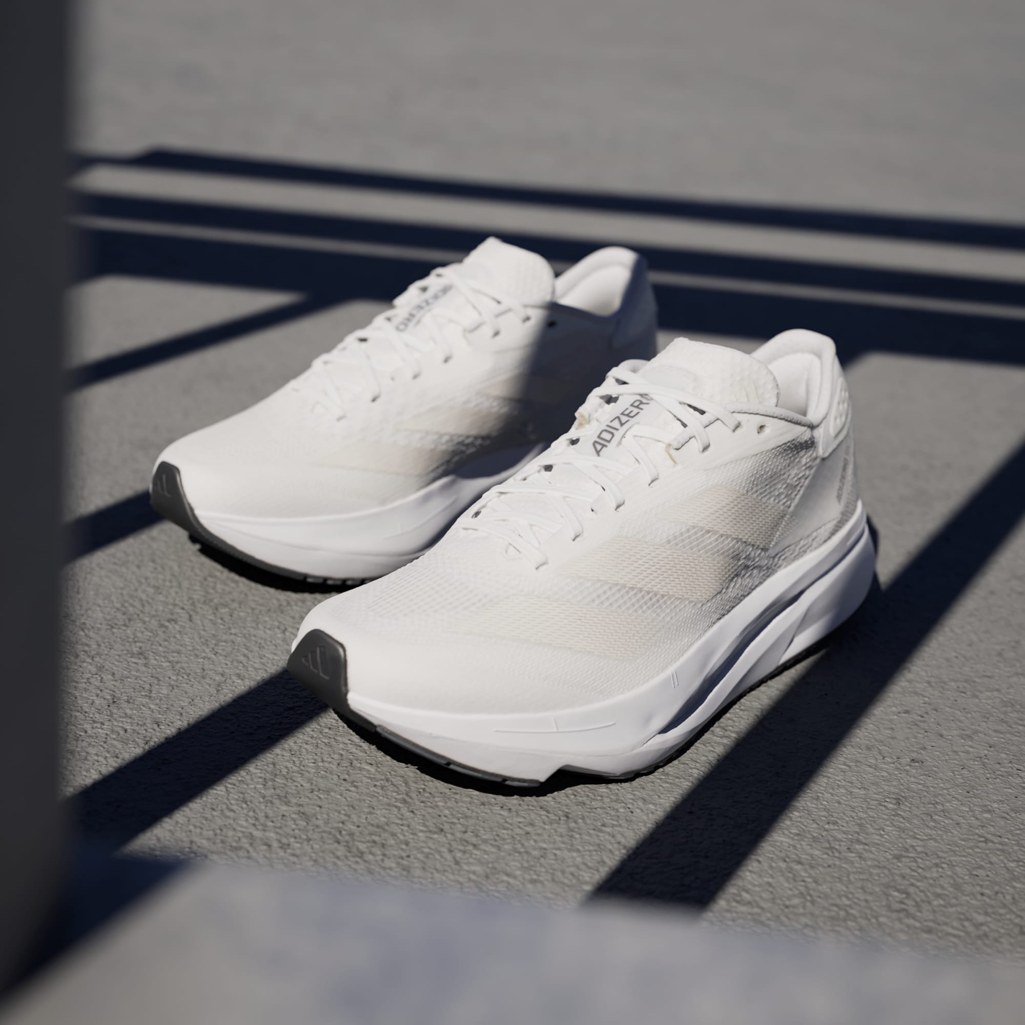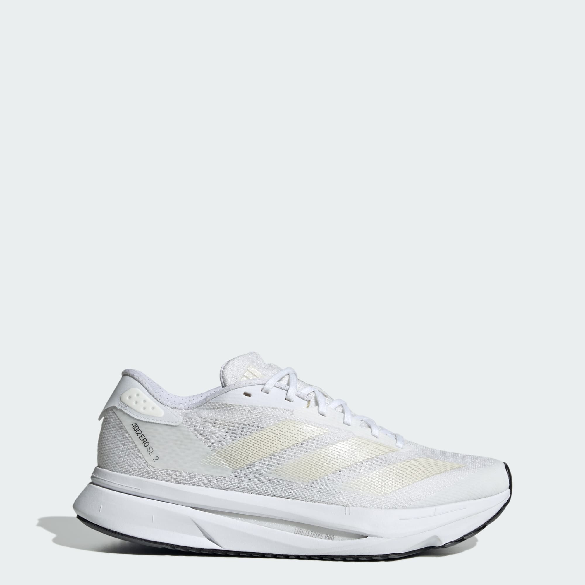 Experience the thrill of breaking personal records in a shoe that's as fast as you are. These adidas Adizero running shoes are equipped with responsive Lightstrike Pro, super-light cushioning that delivers energy return for next-level speed. The engineered mesh upper provides breathability and targeted support where you need it most to keep you flying to the finish. This product features at least 20% recycled materials. By reusing materials that have already been created, we help to reduce waste and our reliance on finite resources and reduce the footprint of the products we make.