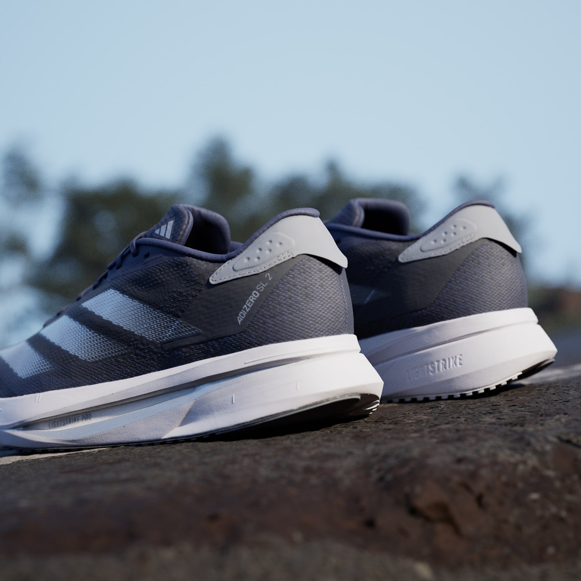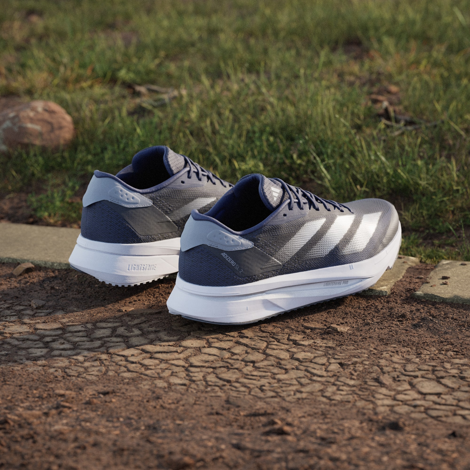 Experience the thrill of breaking personal records in a shoe that's as fast as you are. These adidas Adizero running shoes are equipped with responsive Lightstrike Pro, super-light cushioning that delivers energy return for next-level speed. The engineered mesh upper provides breathability and targeted support where you need it most to keep you flying to the finish. This product features at least 20% recycled materials. By reusing materials that have already been created, we help to reduce waste and our reliance on finite resources and reduce the footprint of the products we make.