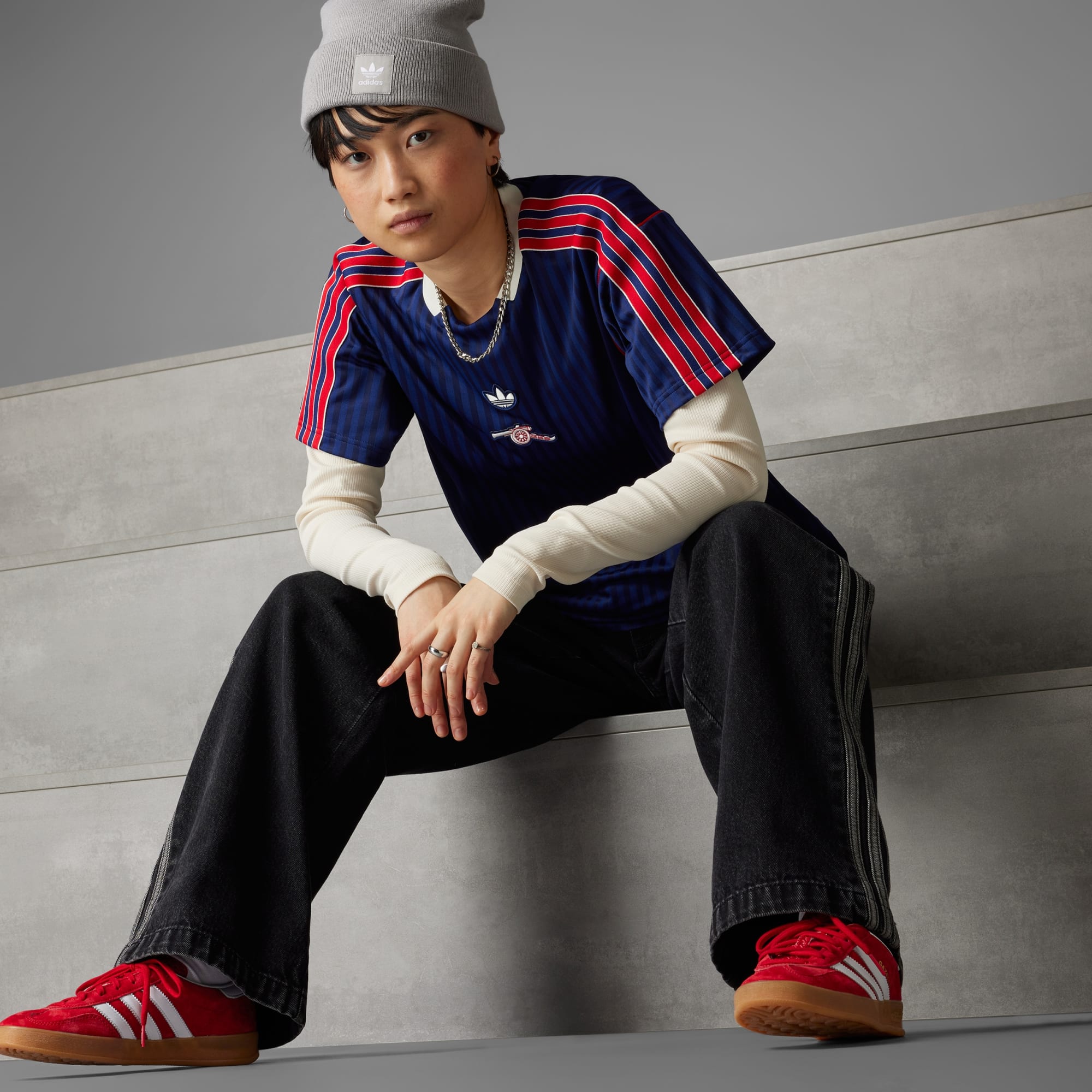 Paying tribute to an era that transformed soccer culture, this adidas Arsenal jersey is a must-have for fans of retro style. Its dull-shiny fabric, vintage badge and sewn-on Trefoil are pure '80s. The loose fit and soft fabric will ensure it's at the front of the queue when you want to kick back.This product is made with 100% recycled materials. By reusing materials that have already been created, we help to reduce waste and our reliance on finite resources and reduce the footprint of the products we make.This jersey was made using UNITEFIT 鈥?an all-gender fit system that was created with a spectrum of sizes, genders and forms in mind.