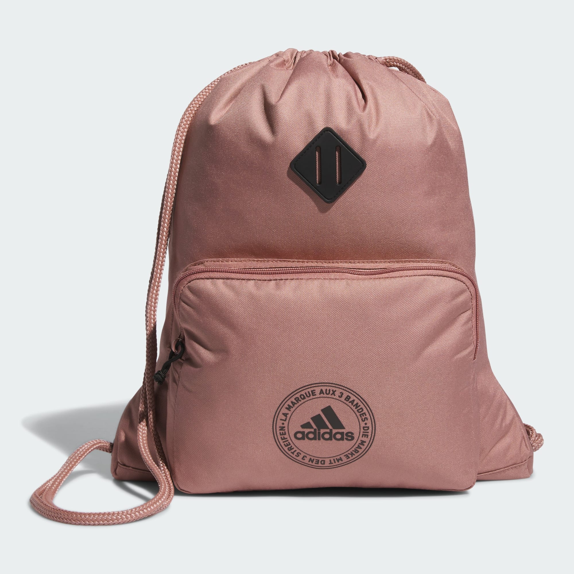Keep your load light and your hands free. This adidas sackpack has plenty of space for the essentials, and cinches shut with a pull of the sturdy cords. Zip away your phone in the front pocket and you're ready to head out, travel cup in hand.
