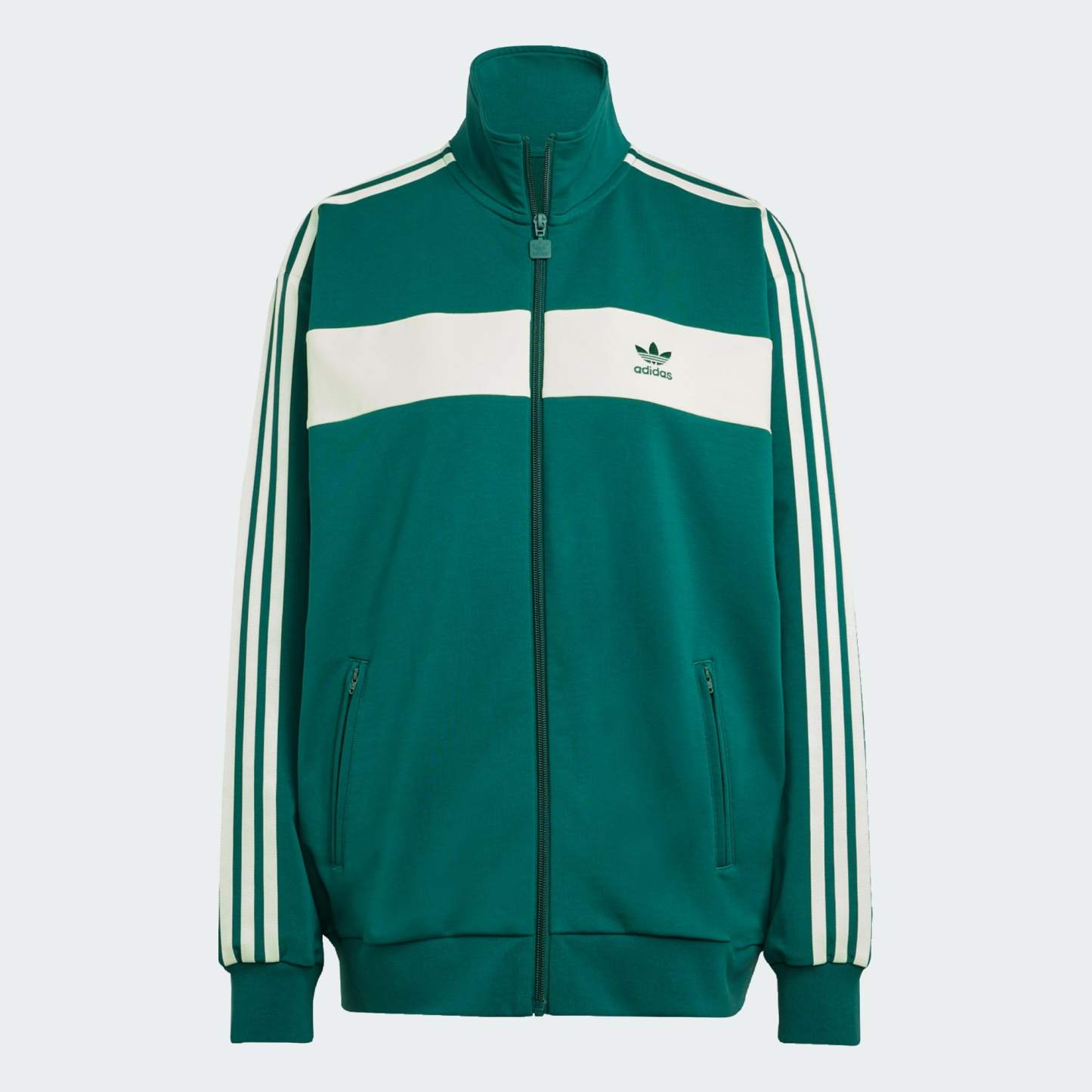 An ode to the iconic '80s, this relaxed adidas track top is a retro revival. Rocking blocks of bold color, it's designed with nostalgia reimagined for today. Soft French terry fabric and ribbed cuffs keep comfort close. The loose silhouette creates an easygoing vibe perfect for pairing with joggers or jeans. A nod to adidas heritage, the track jacket is made for your life on the move.By choosing recycled, we are able to reuse materials that have already been created, which helps to reduce waste. Renewable materials choices will help us to remove our reliance on finite resources. Our products made with a blend of recycled and renewable materials feature at least 70% total of these materials.