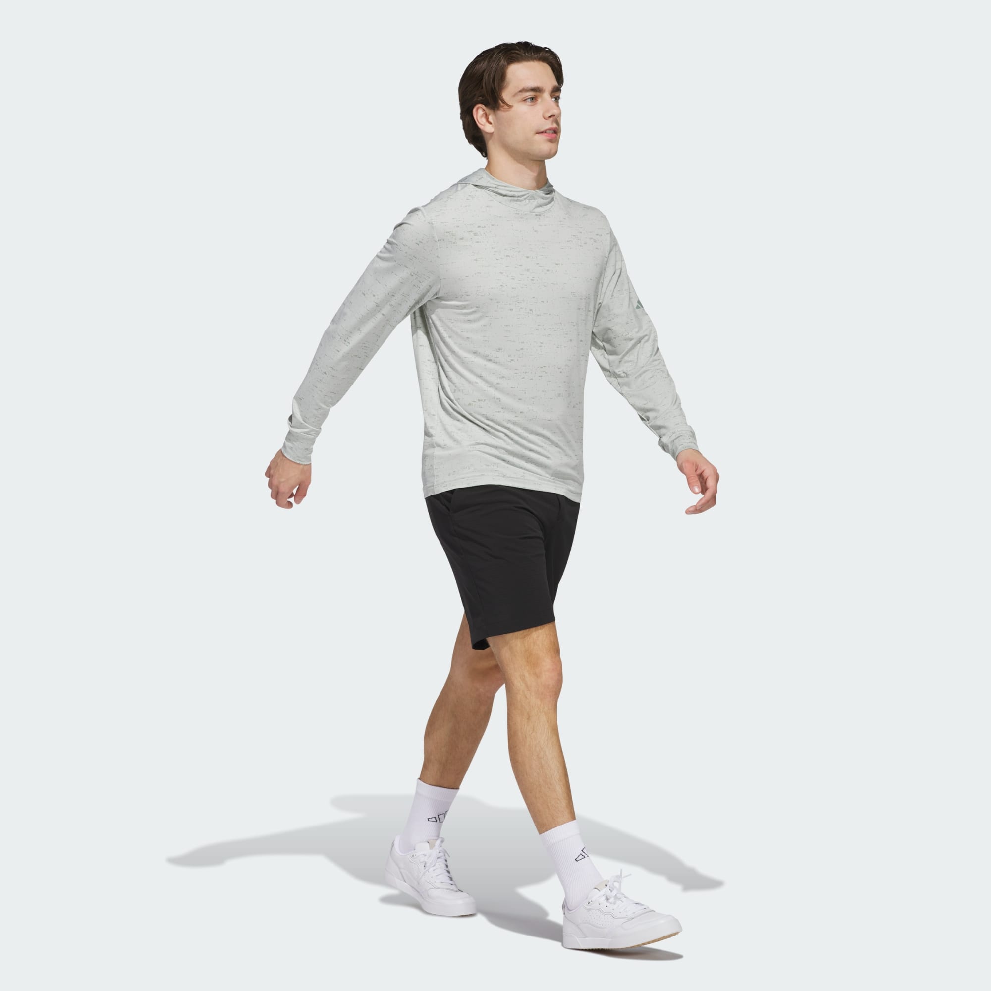 This lightweight golf hoodie from adidas is the ultimate layer. Wear it under a jacket for early-morning tee times when the course is cool. The soft, stretchy fabric lets you twist and bend with no restriction. When your game heats up, shed the outer layer and show off the allover print as you nail shots on the back nine.