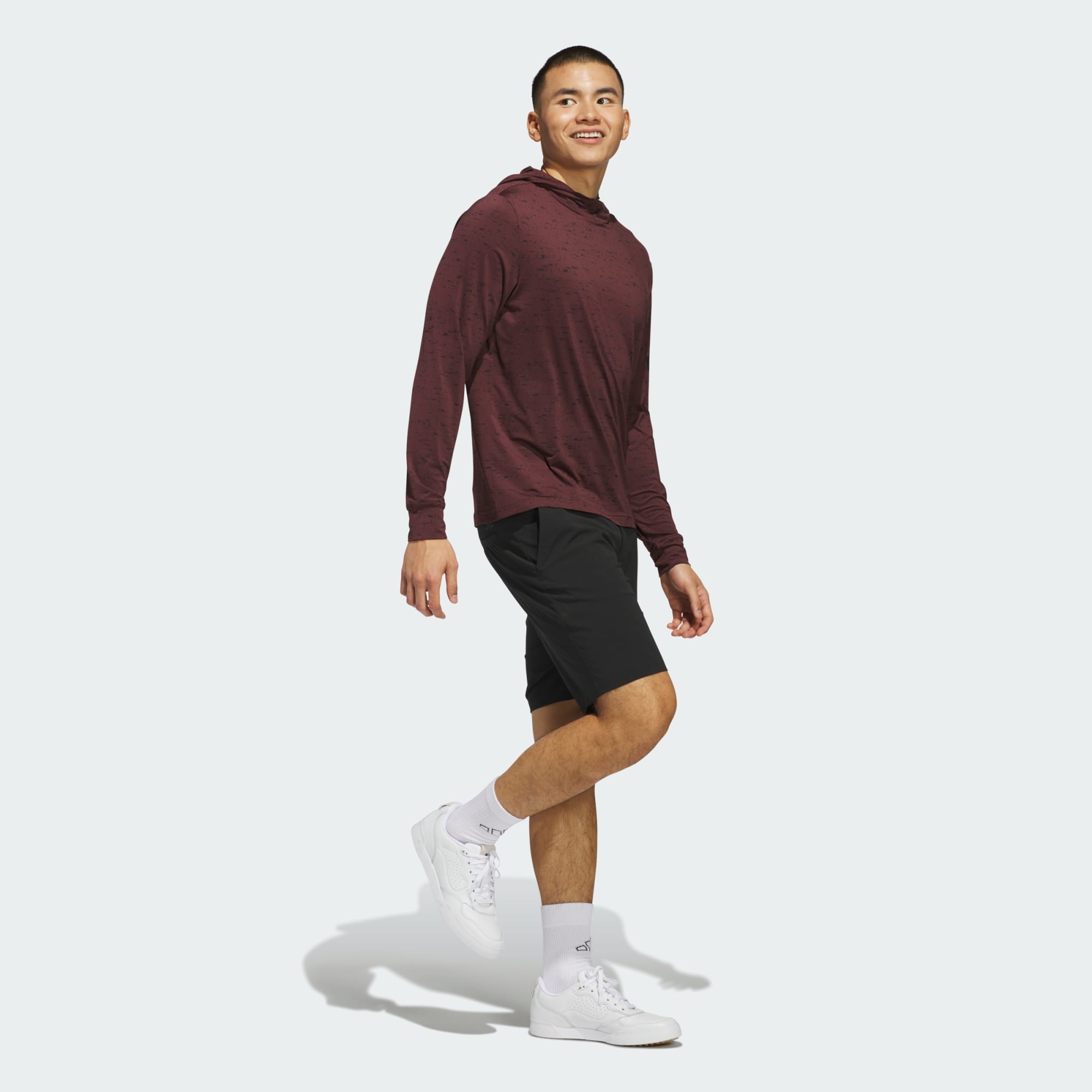 This lightweight golf hoodie from adidas is the ultimate layer. Wear it under a jacket for early-morning tee times when the course is cool. The soft, stretchy fabric lets you twist and bend with no restriction. When your game heats up, shed the outer layer and show off the allover print as you nail shots on the back nine.