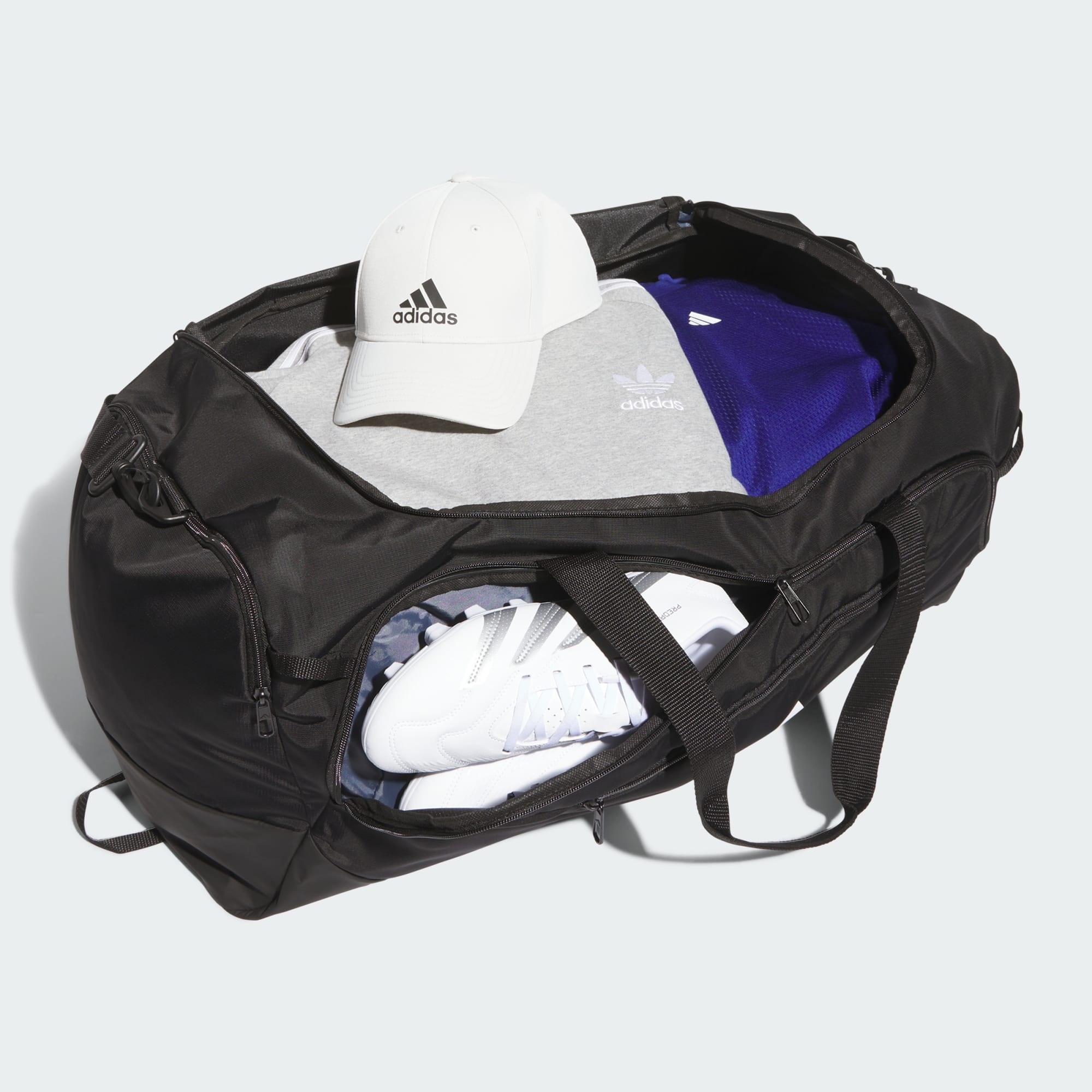 This large all-purpose duffel bag keeps athletic gear, apparel and accessories organized and easy to access. Its travel-ready design includes durable fabric with a water-resistant base to keep stuff dry and built-in webbing attachments where you can clip stuff like keys or a water bottle. It has a large main storage area plus multiple zip pockets, including a ventilated pocket to air out dirty gear.