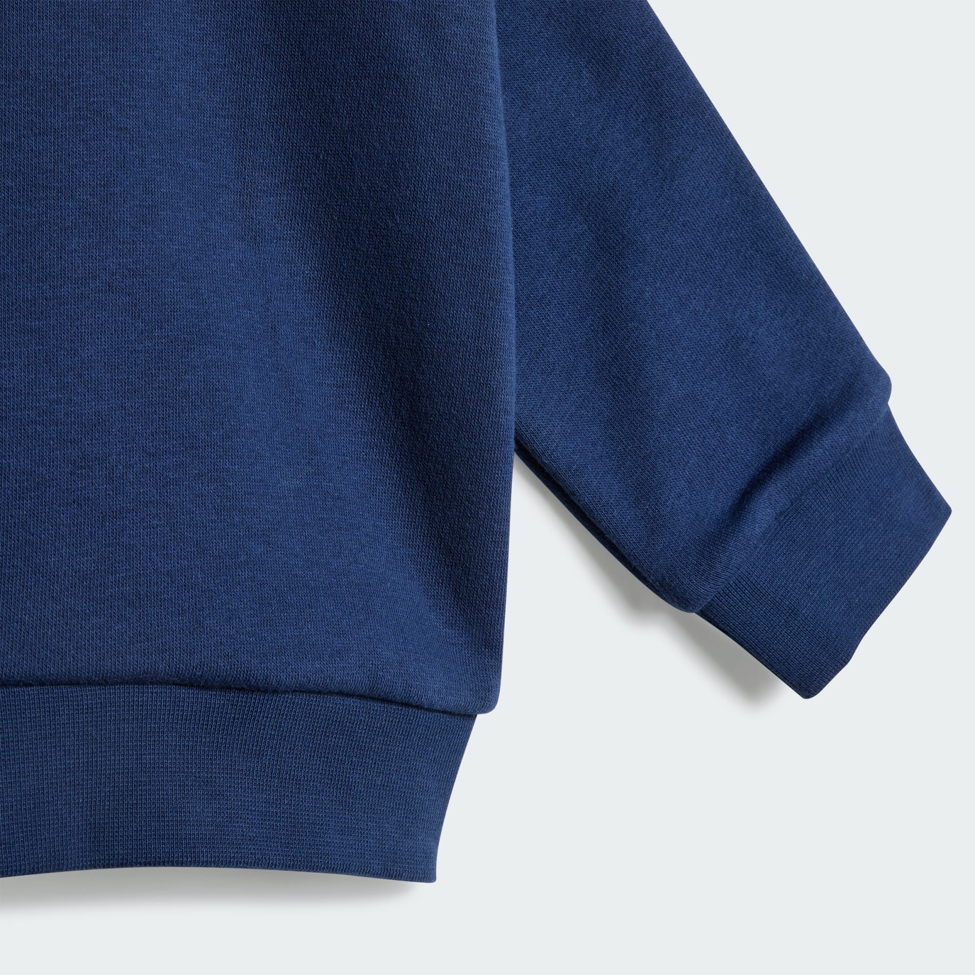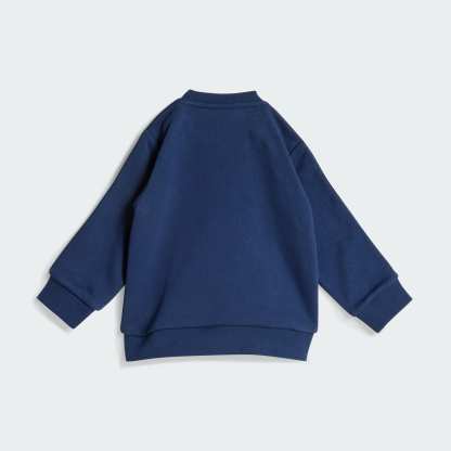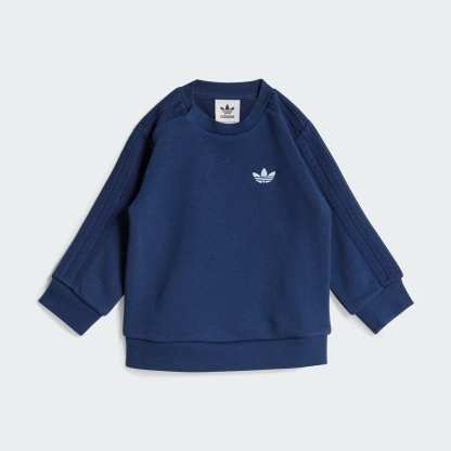 For little ones on the move, this toddlers' set from adidas is a must. Soft and comfortable, the crewneck sweatshirt comes with stretch-waist denim pants featuring signature 3-Stripes. Ribbed cuffs seal in warmth.