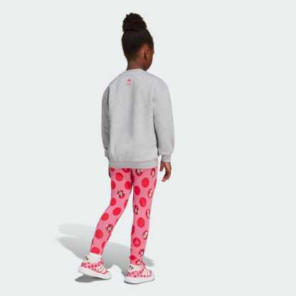 Disney's Minnie Mouse knows how to rock the dots. Soft and stretchy, this kids' adidas set shows off a colourful polka-dot design that celebrates fun and friendship. The loose fitting sweatshirt and sporty leggings are the perfect combo for exploring and adventure.