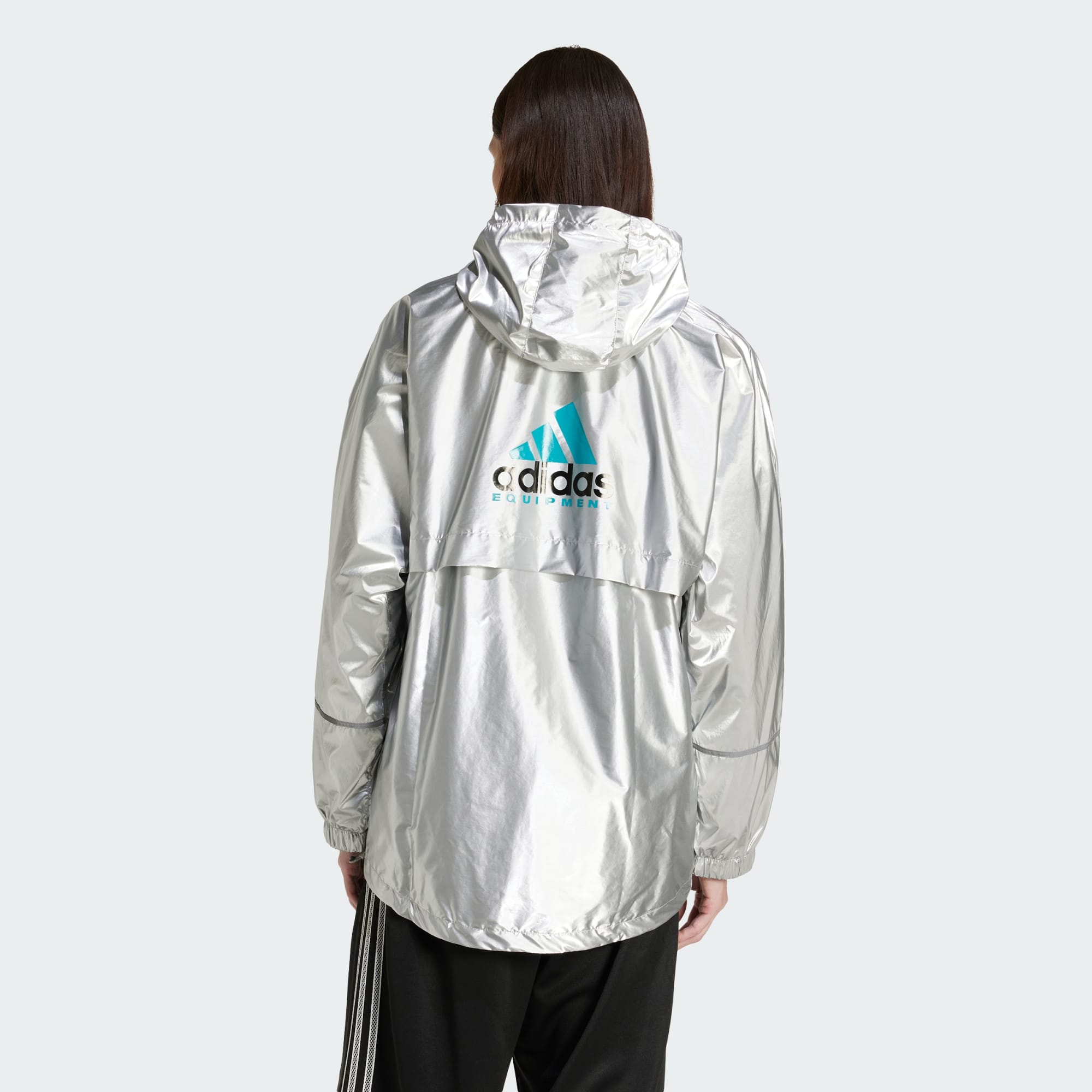 This adidas windbreaker jacket layers you in retro-inspired style with a futuristic twist. It has a shiny metallic finish with signature Equipment details inspired by the iconic '90s sportswear collection and a smooth build that keeps the look clean. Zip pockets, an adjustable hem and a packable hood make sure you're ready for anything.