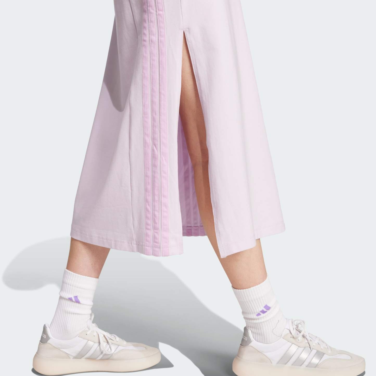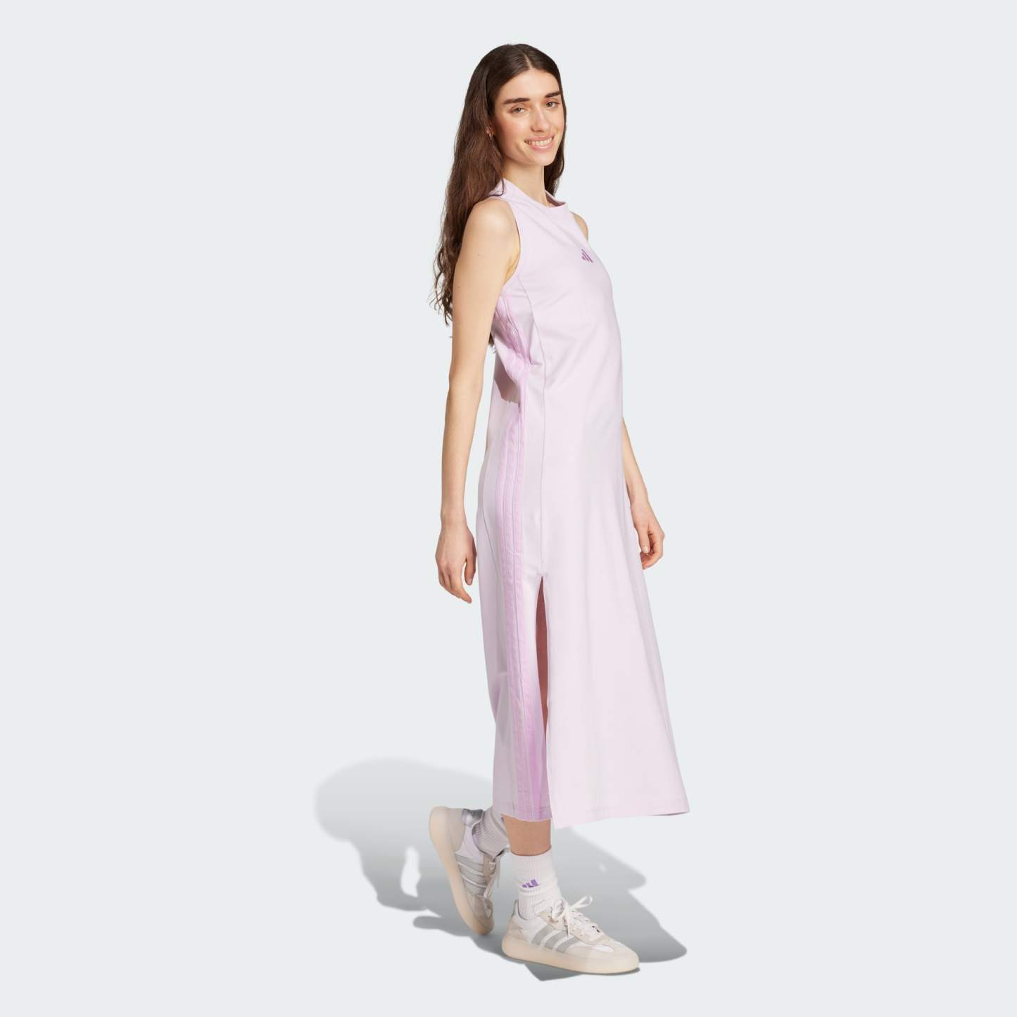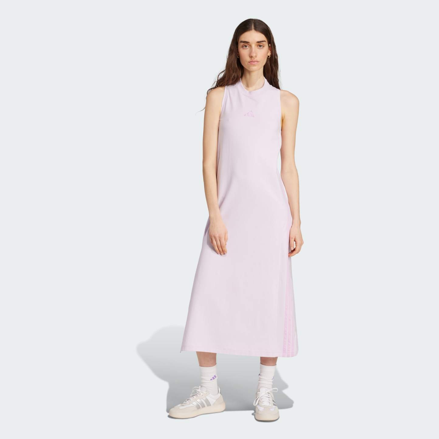 A sleek and stretchy maxi dress with 3-Stripes pride.