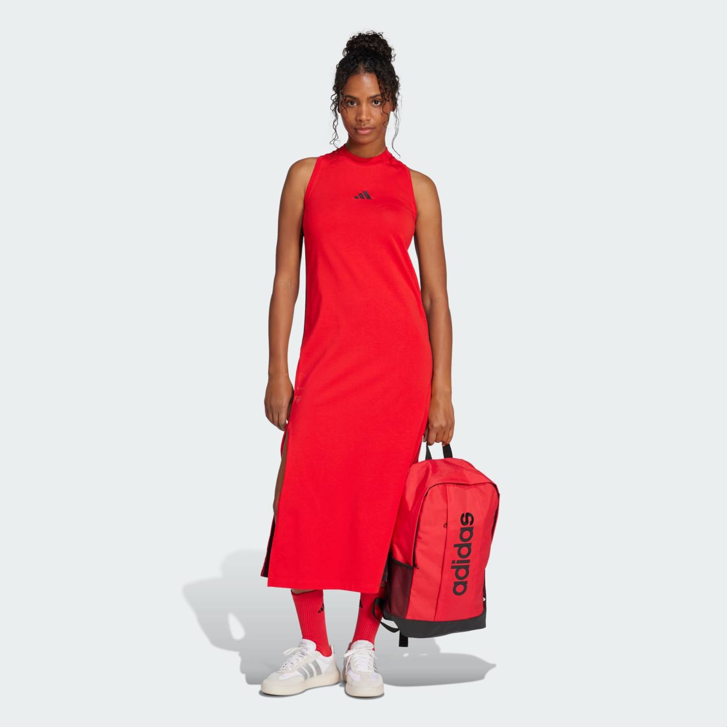 A sleek and stretchy maxi dress with 3-Stripes pride.