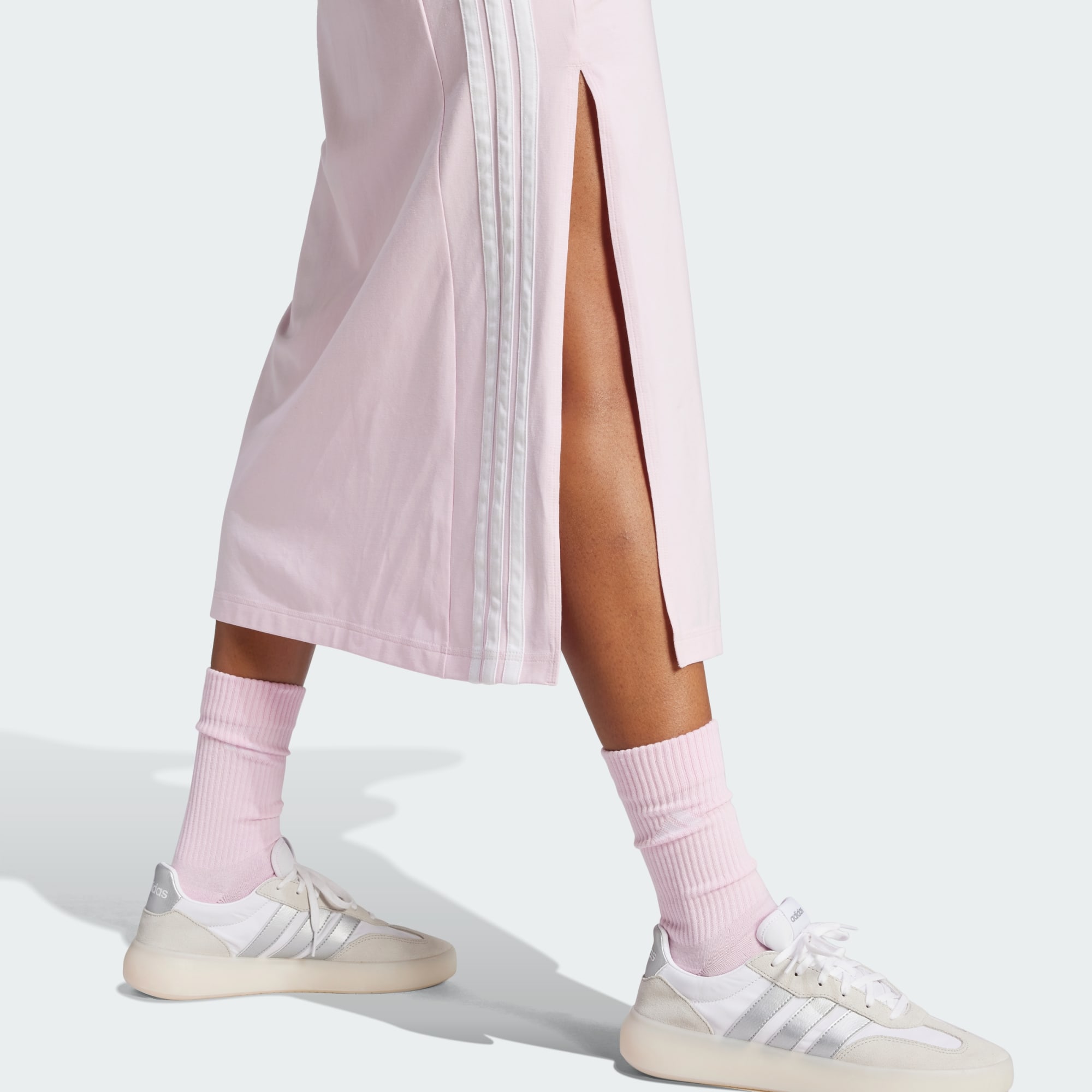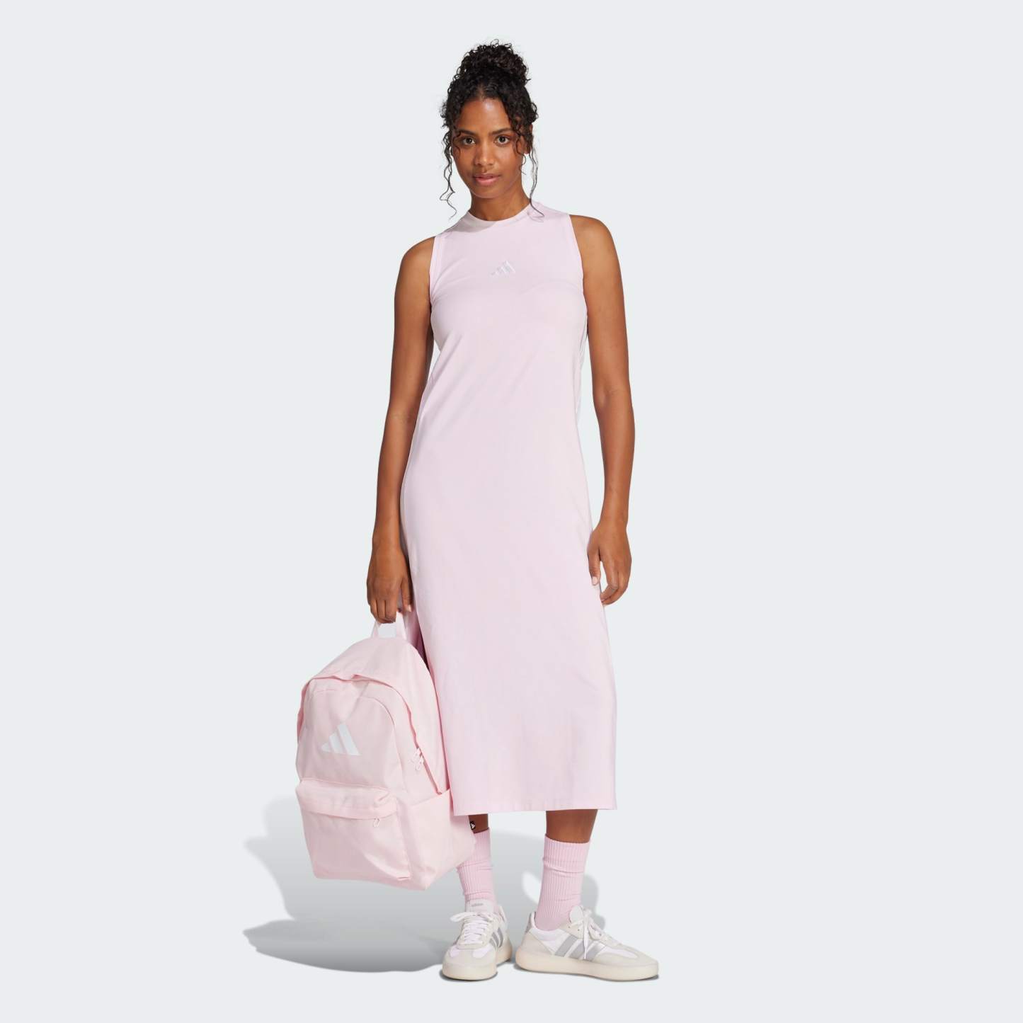 A sleek and stretchy maxi dress with 3-Stripes pride.