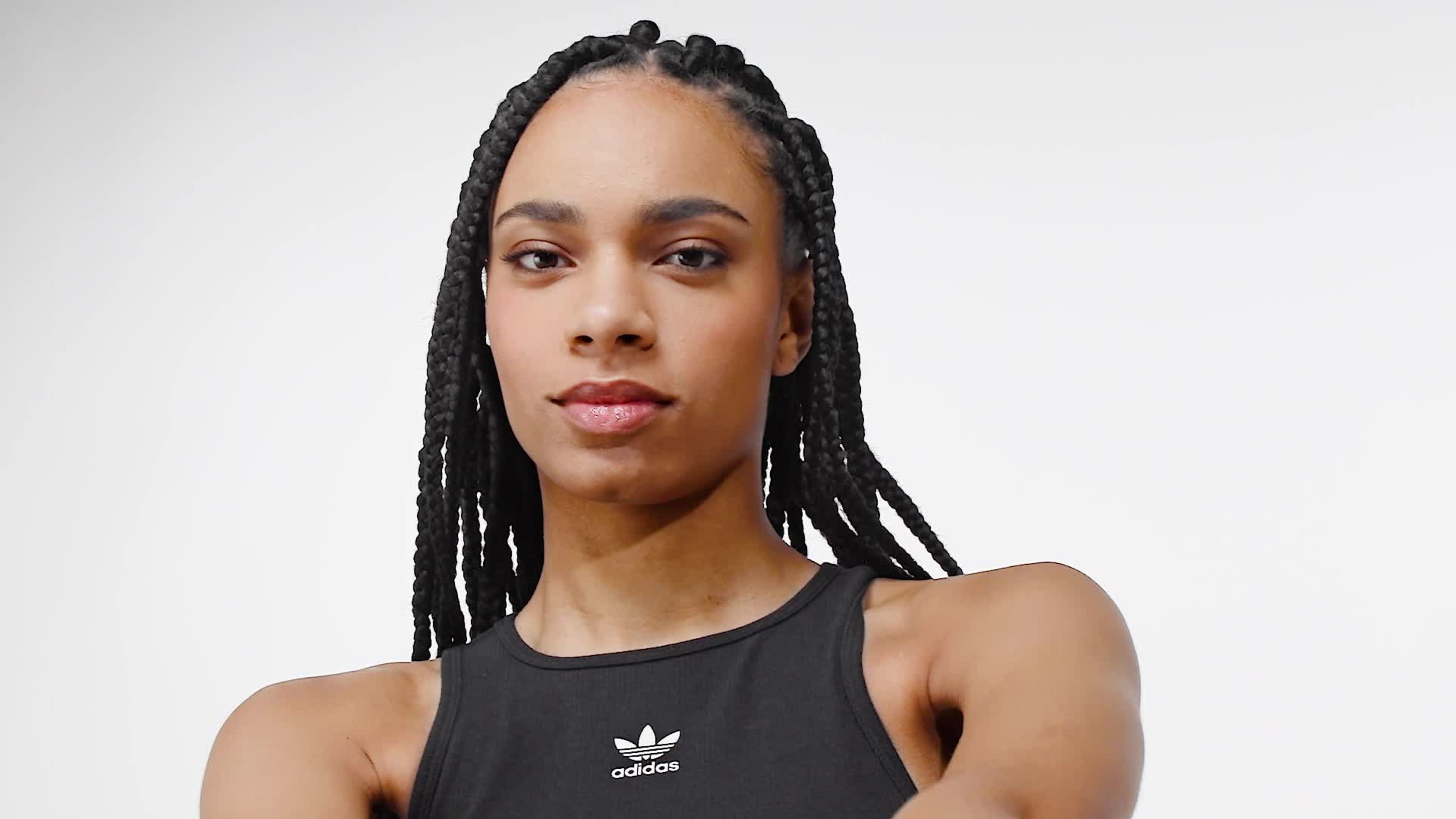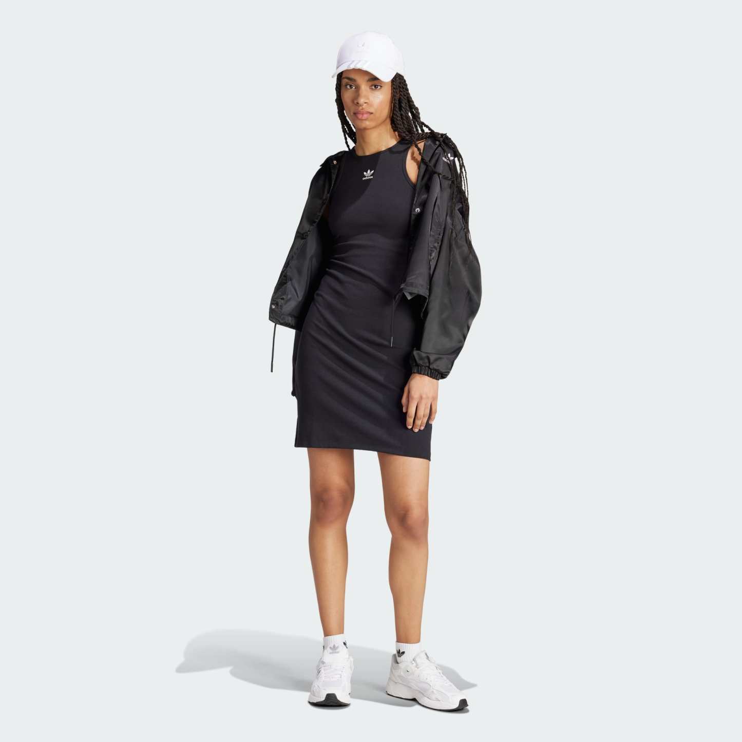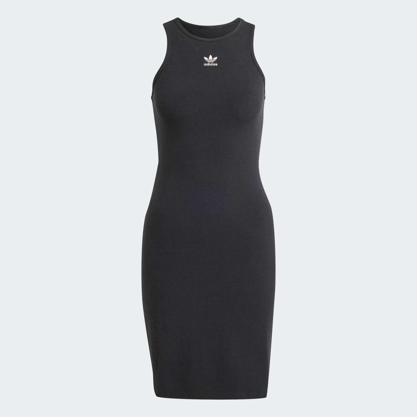 This adidas tank dress embraces shape with a silhouette-hugging fit. Made from a stretchy cotton-blend knit, it keeps you comfortable all day long. Throw it on after yoga or wear it out for drinks 鈥?the simple style pairs effortlessly with sneakers or heels. The minimal design lets you move freely, while subtle details like the scoop neckline and racerback show off your style.