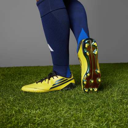 Celebrate speed boot royalty in these limited-collection F50 soccer cleats. Underneath bold branding swiped from the iconic 2010 F50 Adizero, they have a thoroughly modern Fibertouch upper and adidas PRIMEKNIT collar. A Sprintframe 360 outsole ensures they eat up dry grass pitches like their groundbreaking predecessor. Special insole details add their own tribute to an adidas legend.This product features at least 20% recycled materials. By reusing materials that have already been created, we help to reduce waste and our reliance on finite resources and reduce the footprint of the products we make.