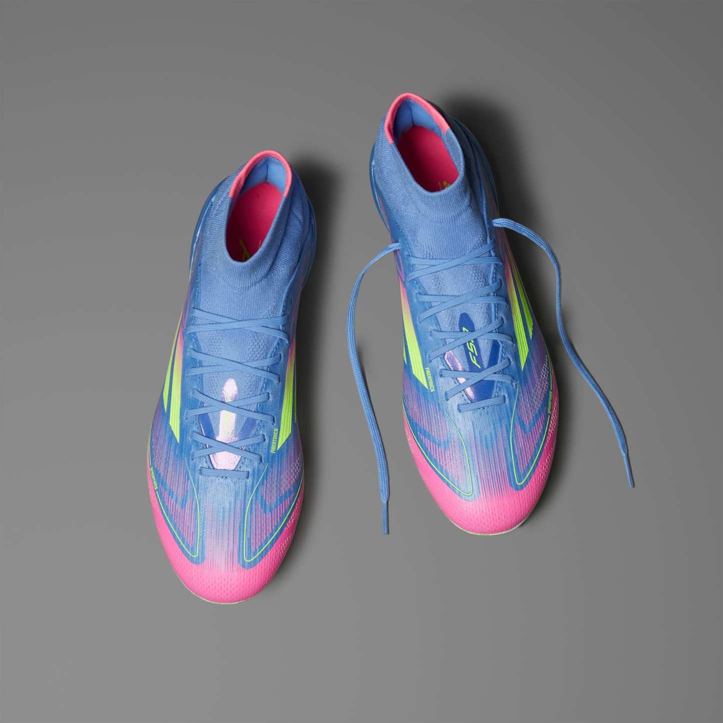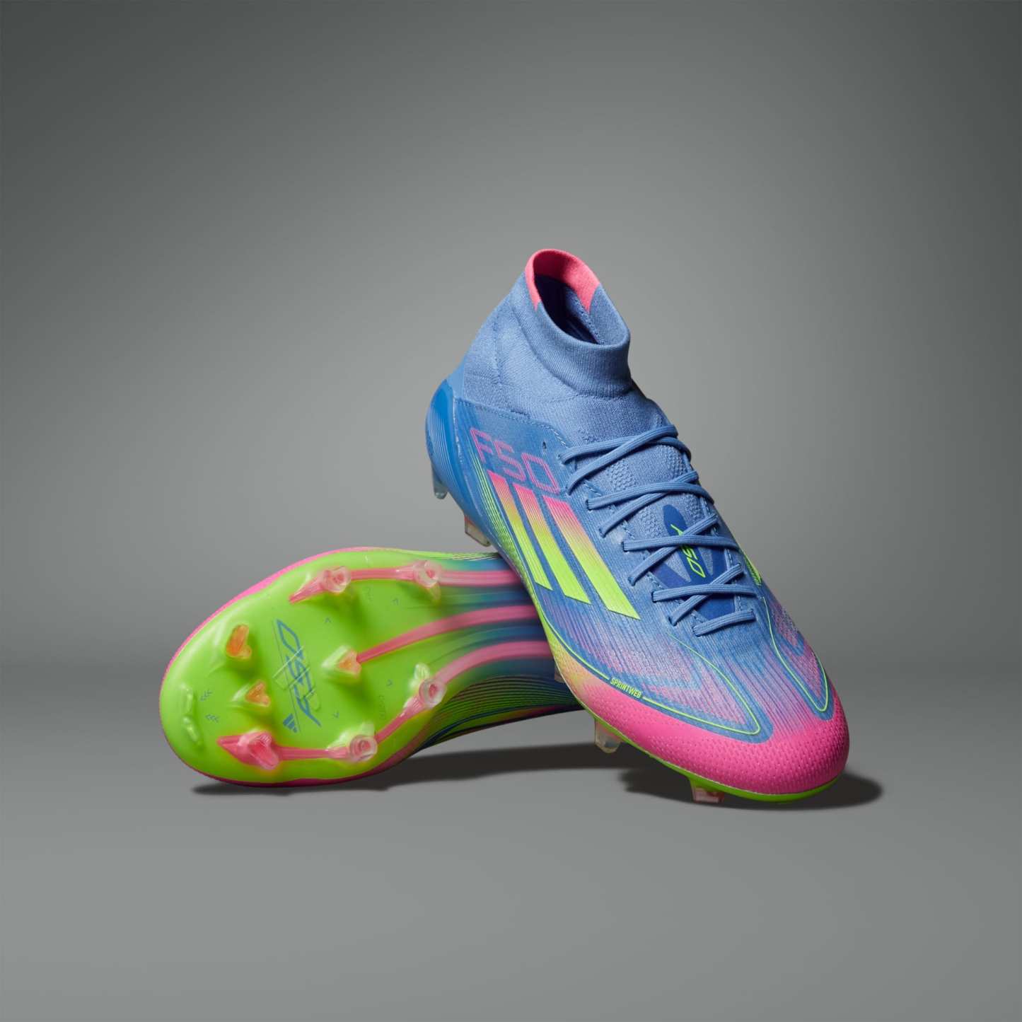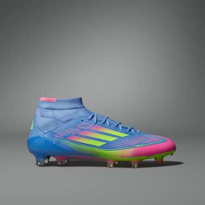 Mid-cut firm ground cleats for lightning pace, made in part with recycled materials.