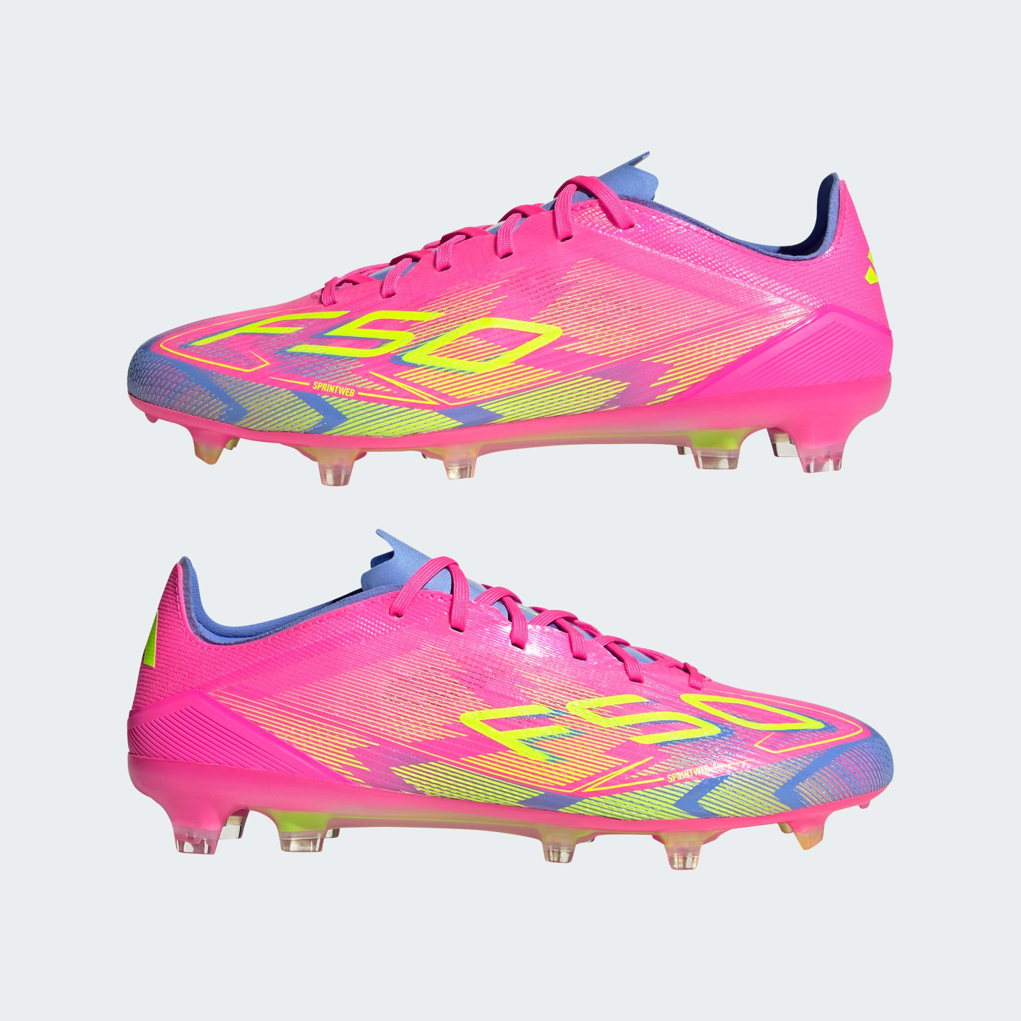 Push your pace to the limit in lightweight adidas F50 footwear engineered for speed. These Pro soccer cleats employ a lightweight Fibertouch upper with Sprintweb 3D texturing for agile dribbling, and a Compression Fit Tunnel Tongue for rock-solid lockdown. The Sprintshell 360 outsole on which they sit is optimized to keep you super-quick on firm ground pitches.This product features at least 20% recycled materials. By reusing materials that have already been created, we help to reduce waste and our reliance on finite resources and reduce the footprint of the products we make.