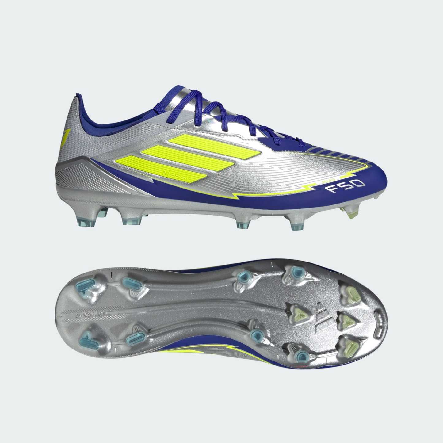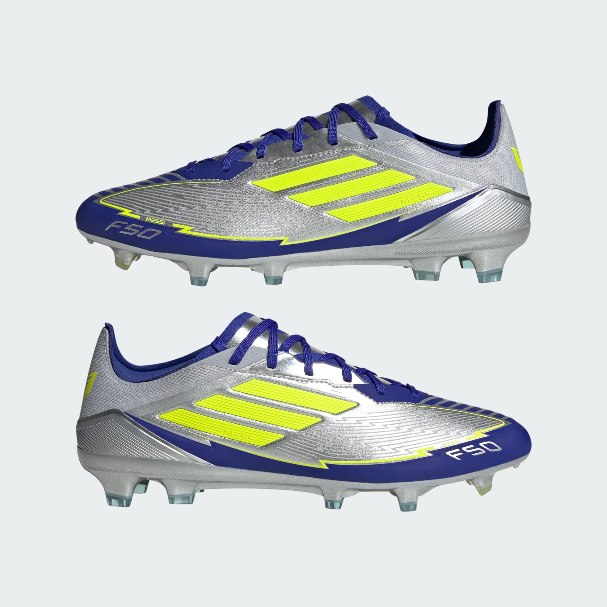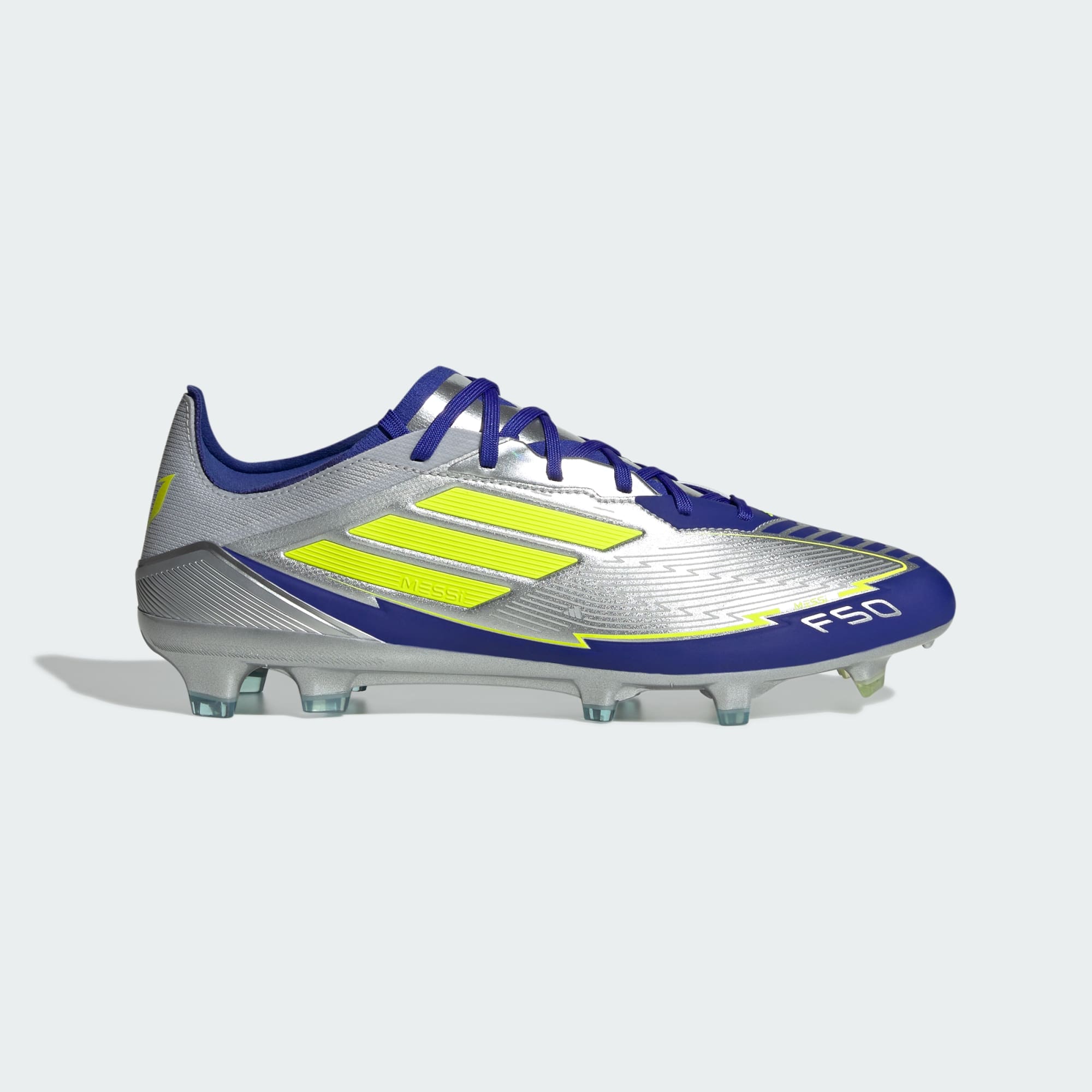 Legendary F50 pace. Mesmerizing Messi skills. Part of a range built to match the GOAT's on-field preferences, these adidas Pro soccer cleats have a flexible HybridTouch upper that offers a comfortable fit. A specialist outsole keeps you agile on firm ground.This product features at least 20% recycled materials. By reusing materials that have already been created, we help to reduce waste and our reliance on finite resources and reduce the footprint of the products we make.