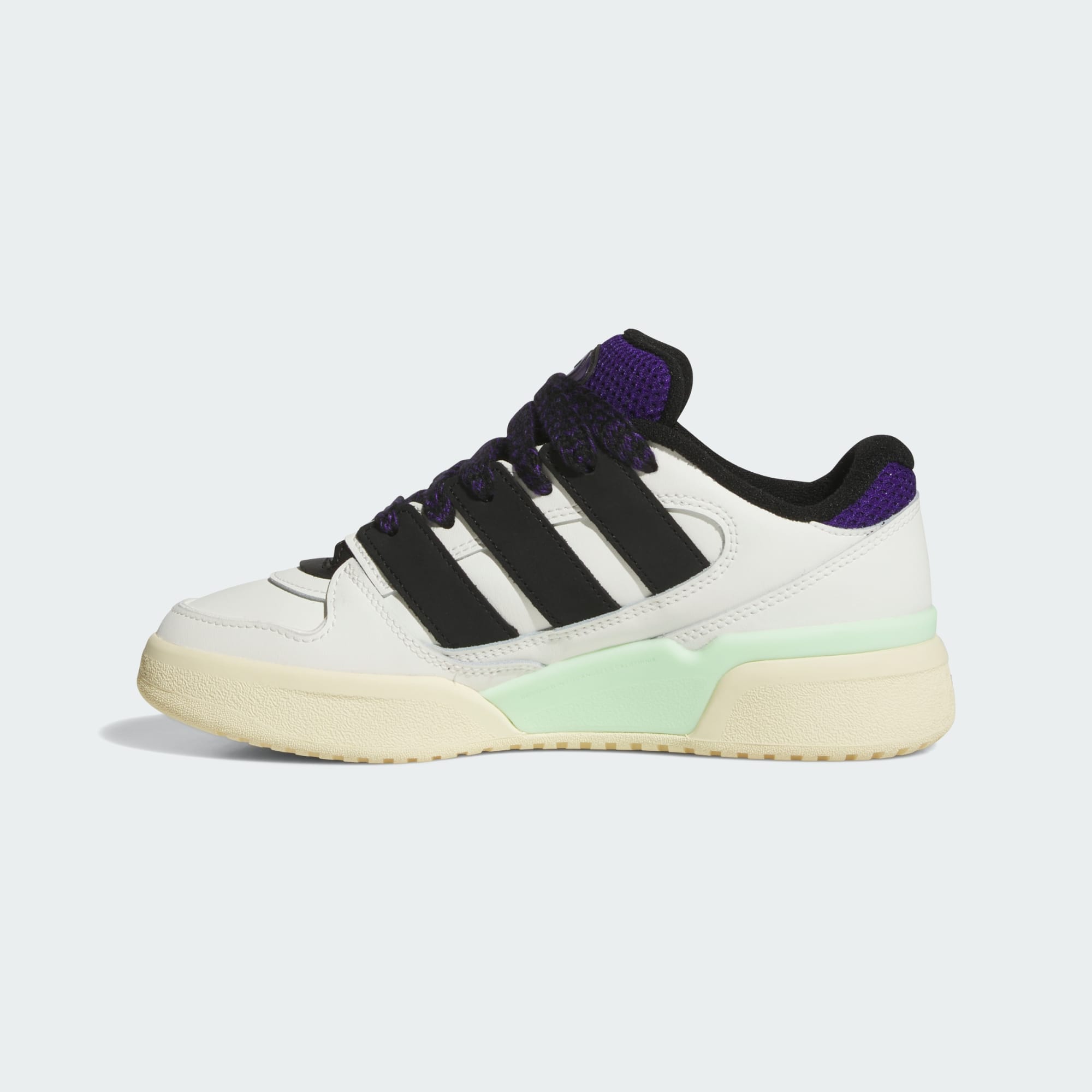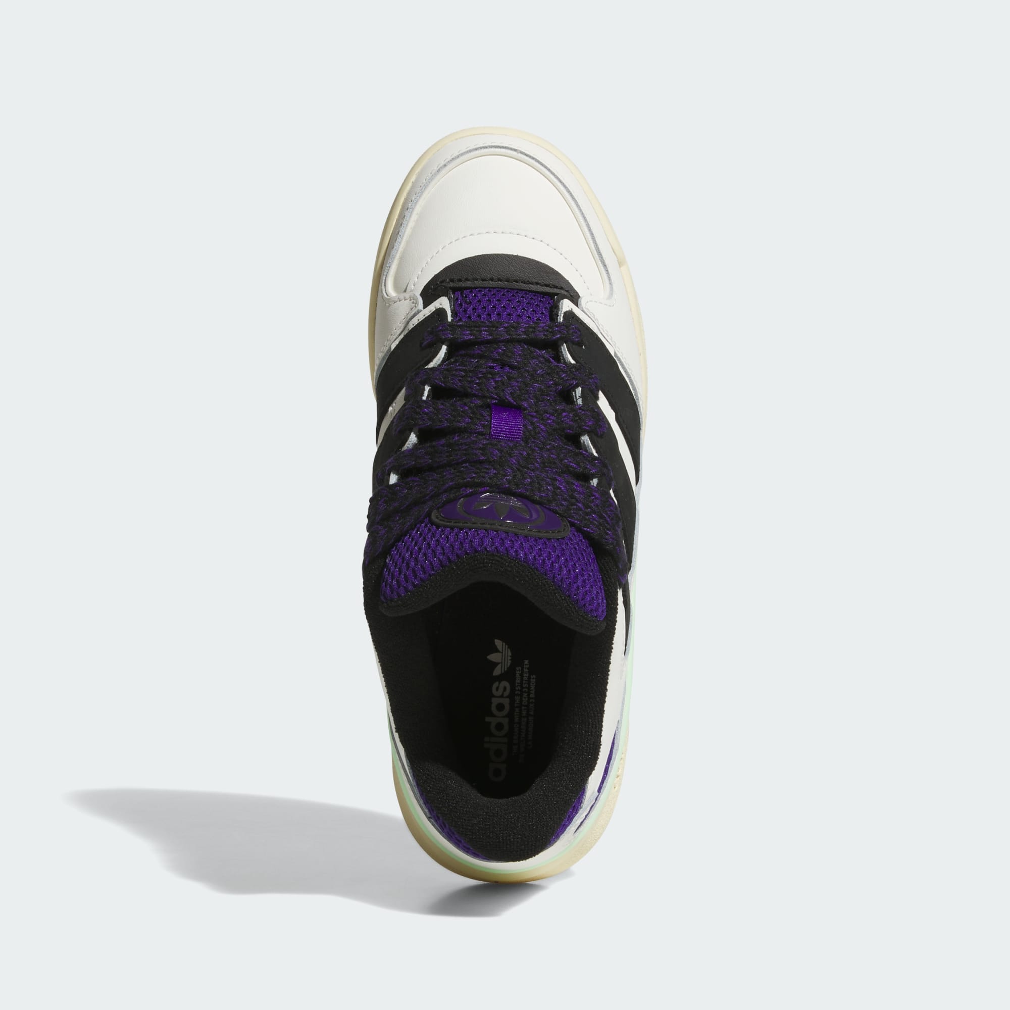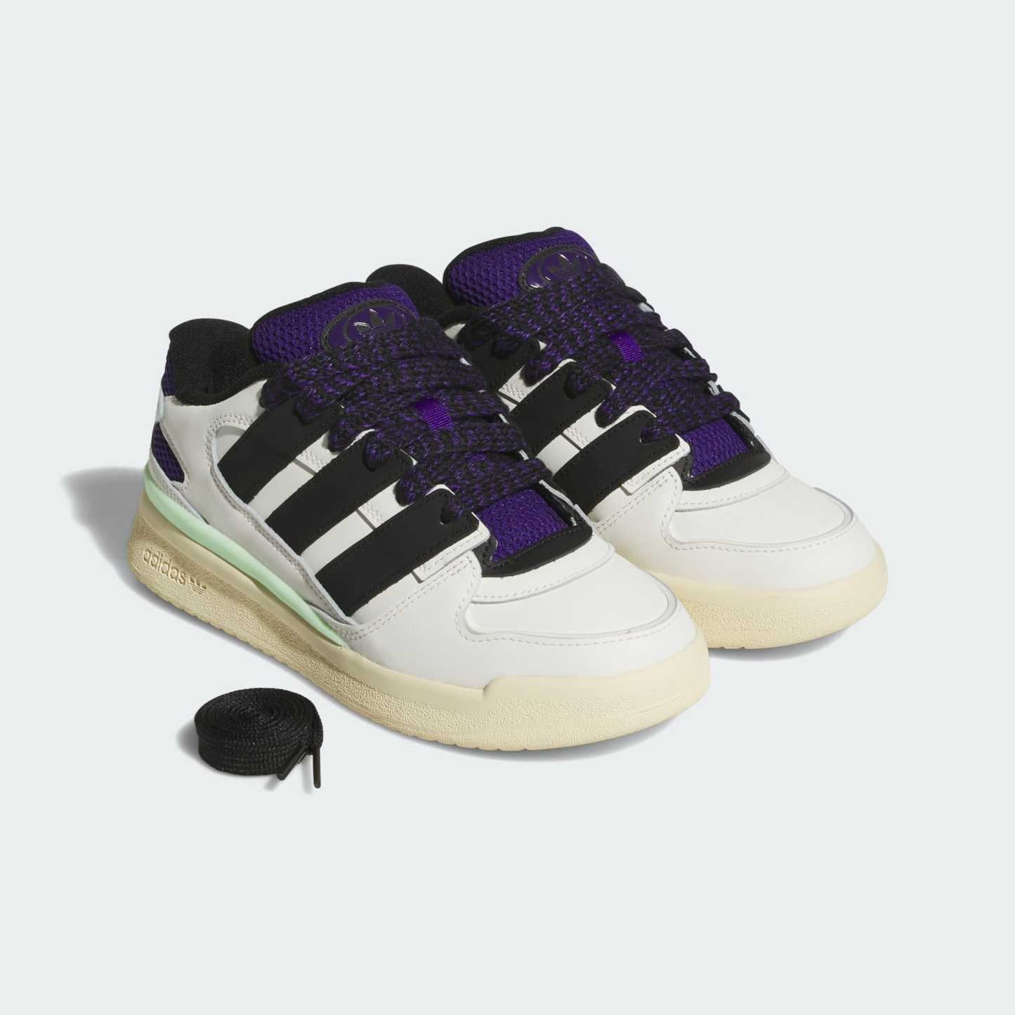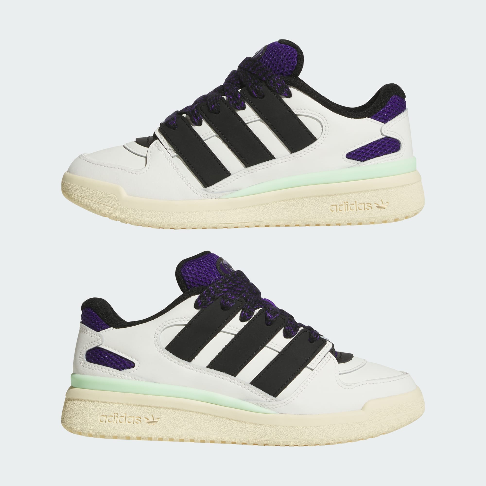 A revamped, exaggerated Forum with oversized 3-Stripes, tongue and laces.