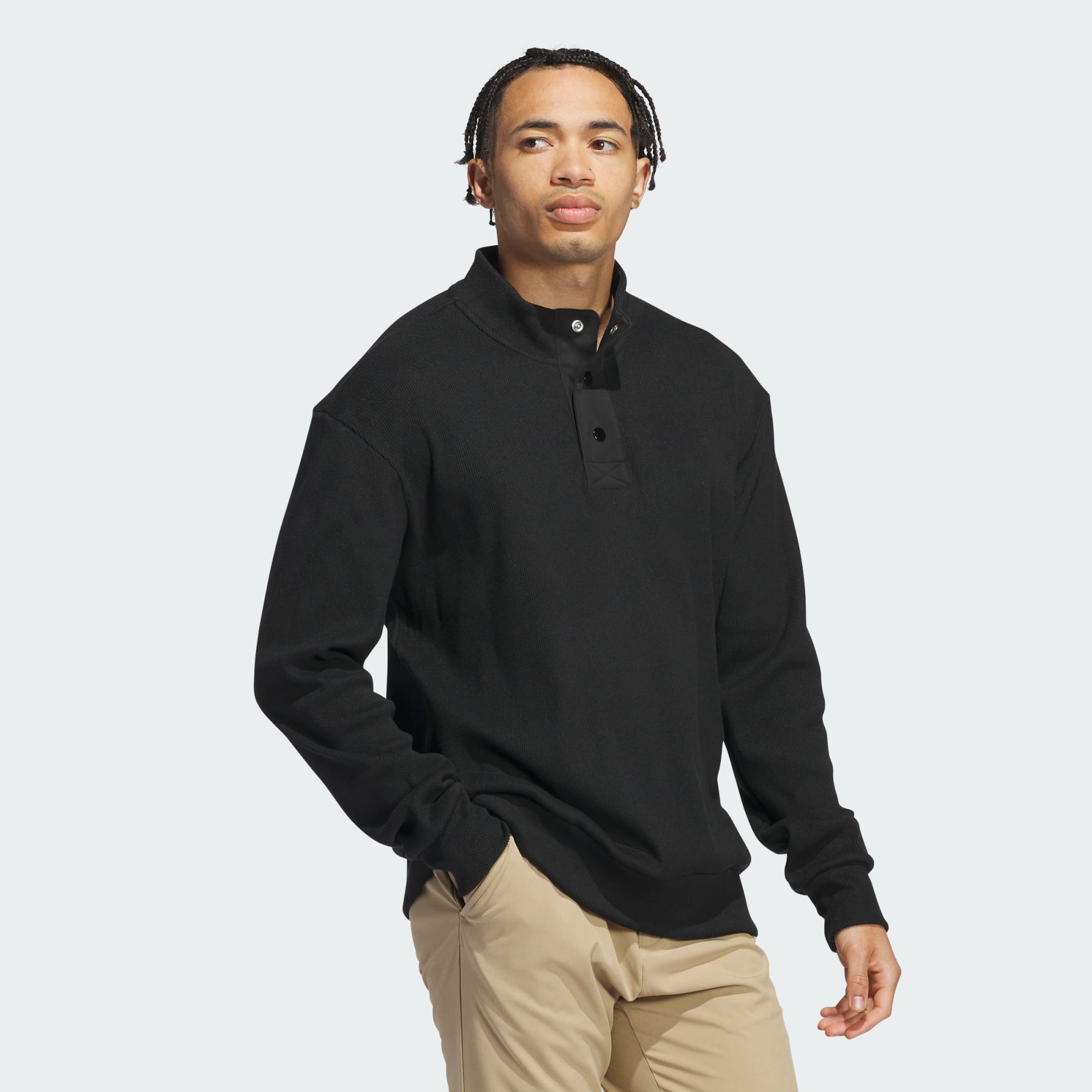 Got post-round plans? This adidas golf pullover is up for anything. It keeps you Cozy through your late-afternoon round and looks casually cool when you head out with your crew afterwards. The stretchy fabric is slightly peached for heat-retention, while drop shoulders make it easy to nail those long drives. A three-snap collar finishes the look.