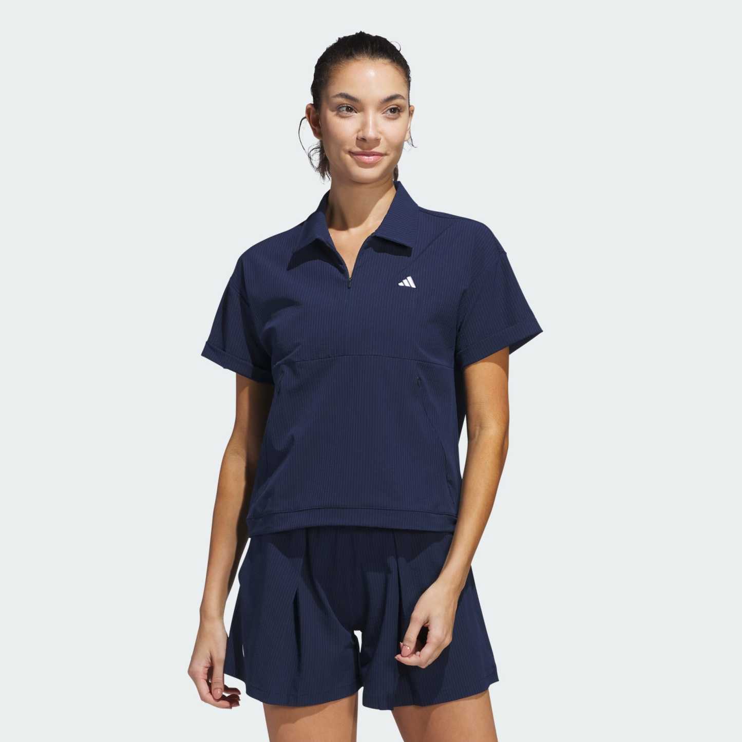 Transitional weather calls for a lightweight layer, and this one from adidas has you covered. The loose, stretchy feel supports your game, and short sleeves won't get in the way of your swing. A water-repellent finish lets you play through occasional showers without missing a beat.