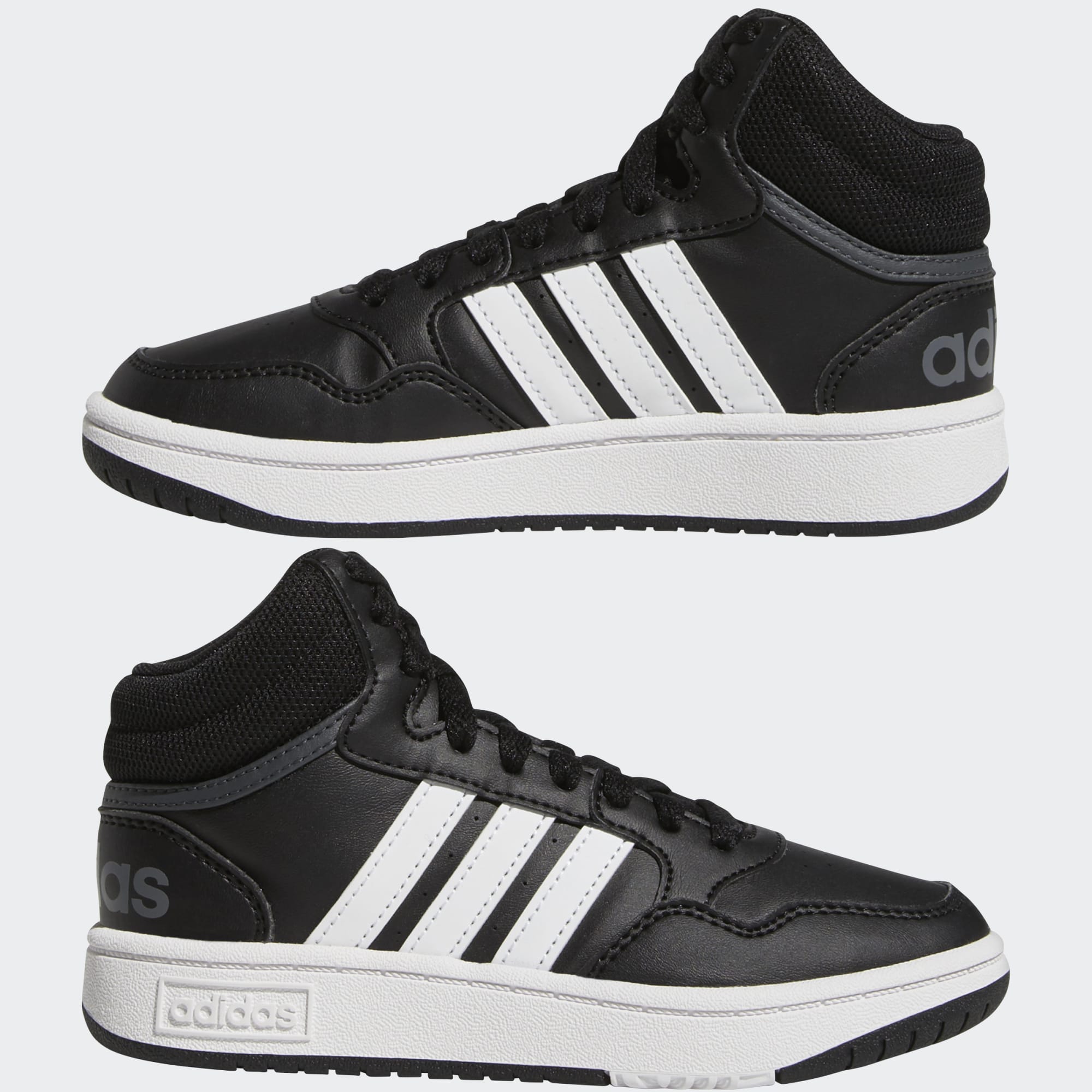 Add some court-inspired style to your young B-ball fan's wardrobe. These kids' adidas sneakers bring the support and stability of a basketball shoe to an everyday sneaker. The synthetic leather upper gives them an elevated look while keeping the shoes lightweight enough for easy movement. A mid-top silhouette hearkens back to the golden age of basketball greats.Made in part with recycled content generated from production waste, e.g. cutting scraps, and post-consumer household waste to avoid the larger environmental impact of producing virgin content.