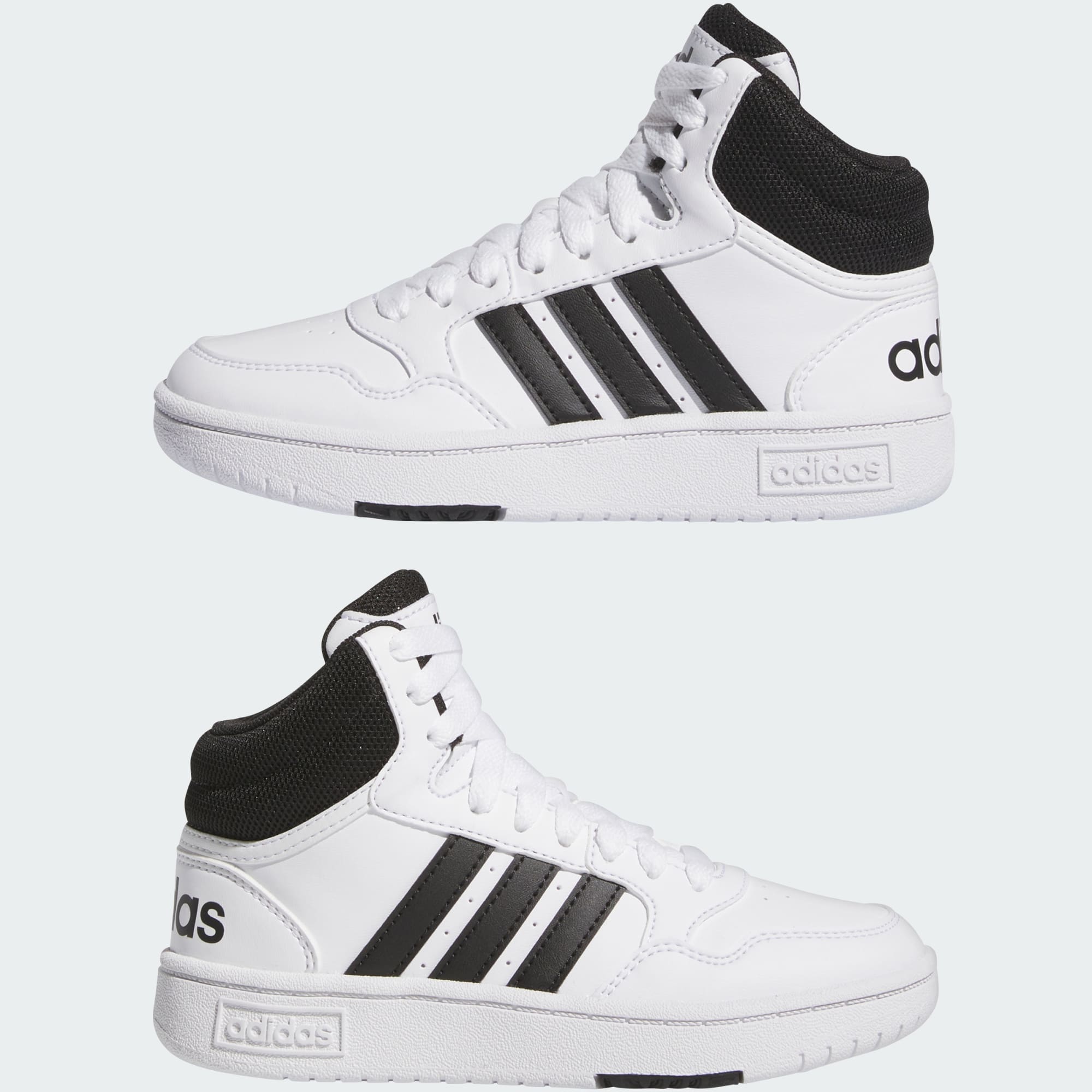 Add some court-inspired style to your young B-ball fan's wardrobe. These kids' adidas sneakers bring the support and stability of a basketball shoe to an everyday sneaker. The synthetic leather upper gives them an elevated look while keeping the shoes lightweight enough for easy movement. A mid-top silhouette hearkens back to the golden age of basketball greats.Made in part with recycled content generated from production waste, e.g. cutting scraps, and post-consumer household waste to avoid the larger environmental impact of producing virgin content.