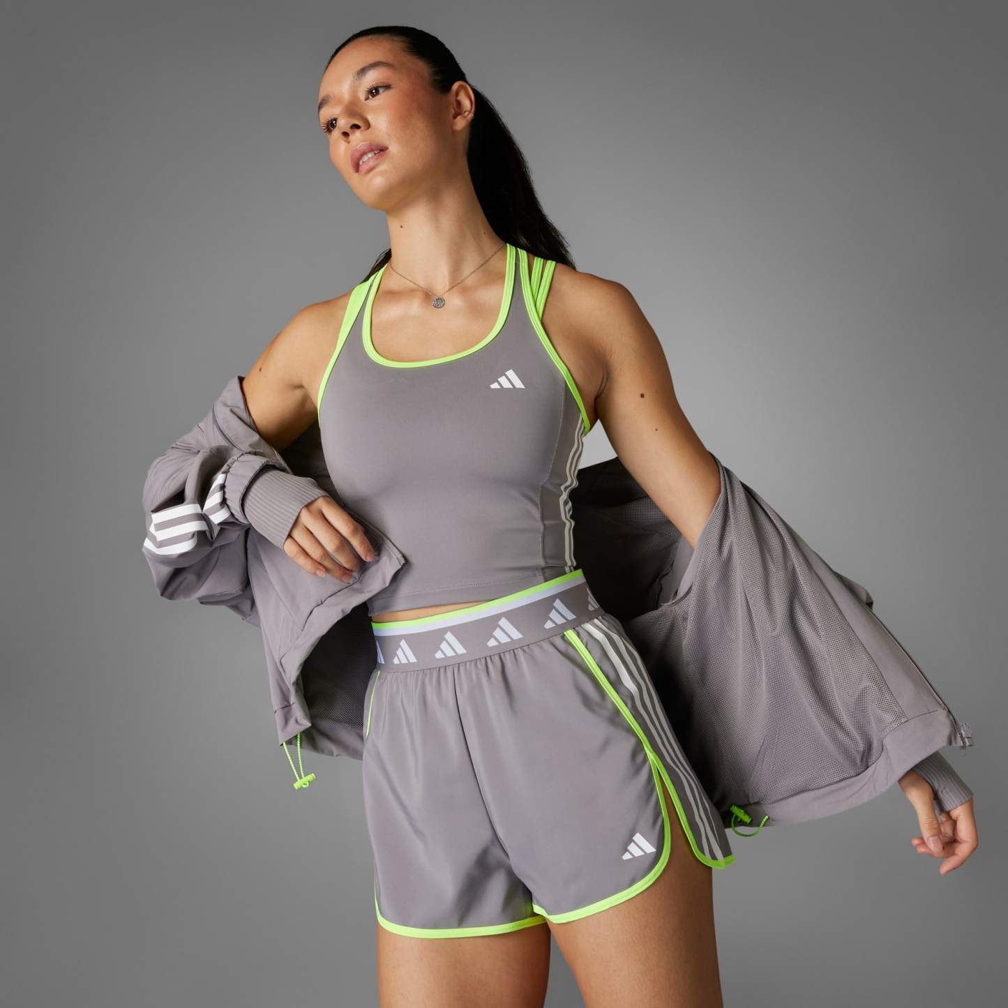 Equally at home in the gym or out and about, these adidas training shorts let you take on your day in sporty-chic style. They're made of woven fabric with side slits for easy movement. A jacquard elastic waistband with a repeating logo print adds a fun pop of color and personality. CLIMACOOL wicks and disperses sweat for cool, dry and distraction-free performance.CLIMACOOL helps you manage sweat with materials that wick and manage sweat quickly. Its fast-dry fibers give you a fresh-skin feel.This product is made with 100% recycled materials. By reusing materials that have already been created, we help to reduce waste and our reliance on finite resources and reduce the footprint of the products we make.