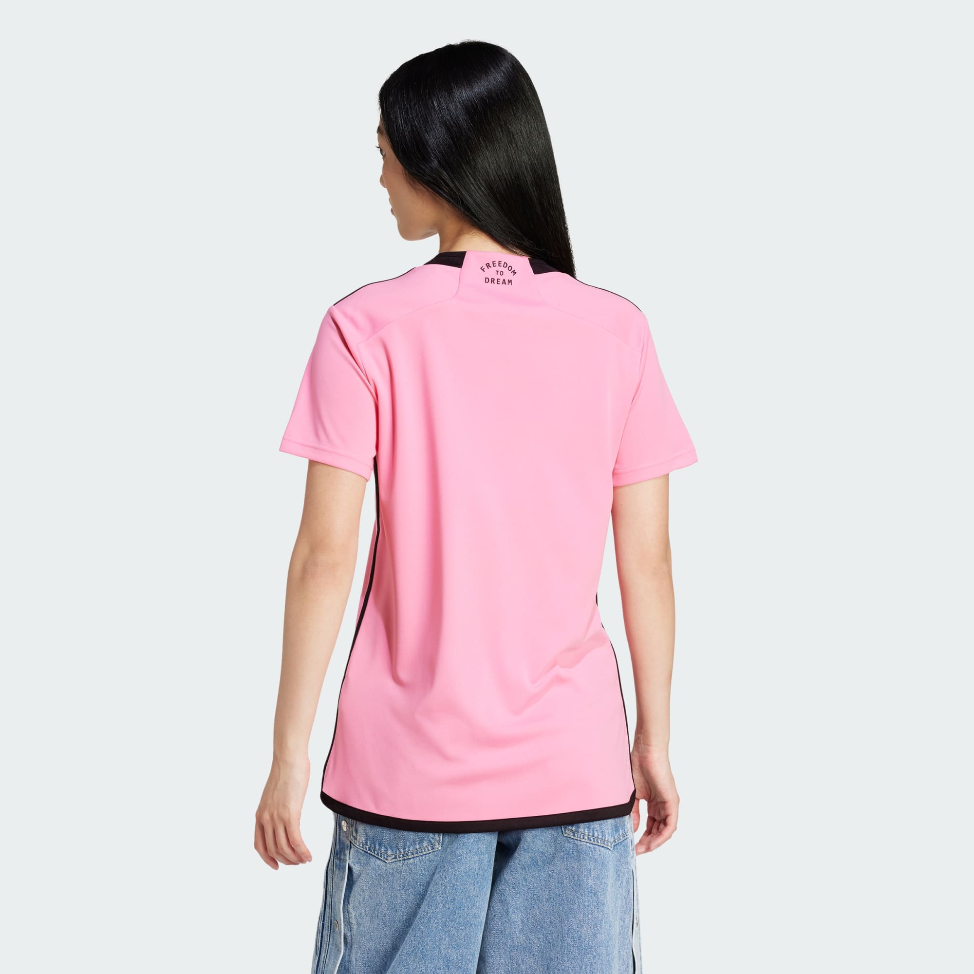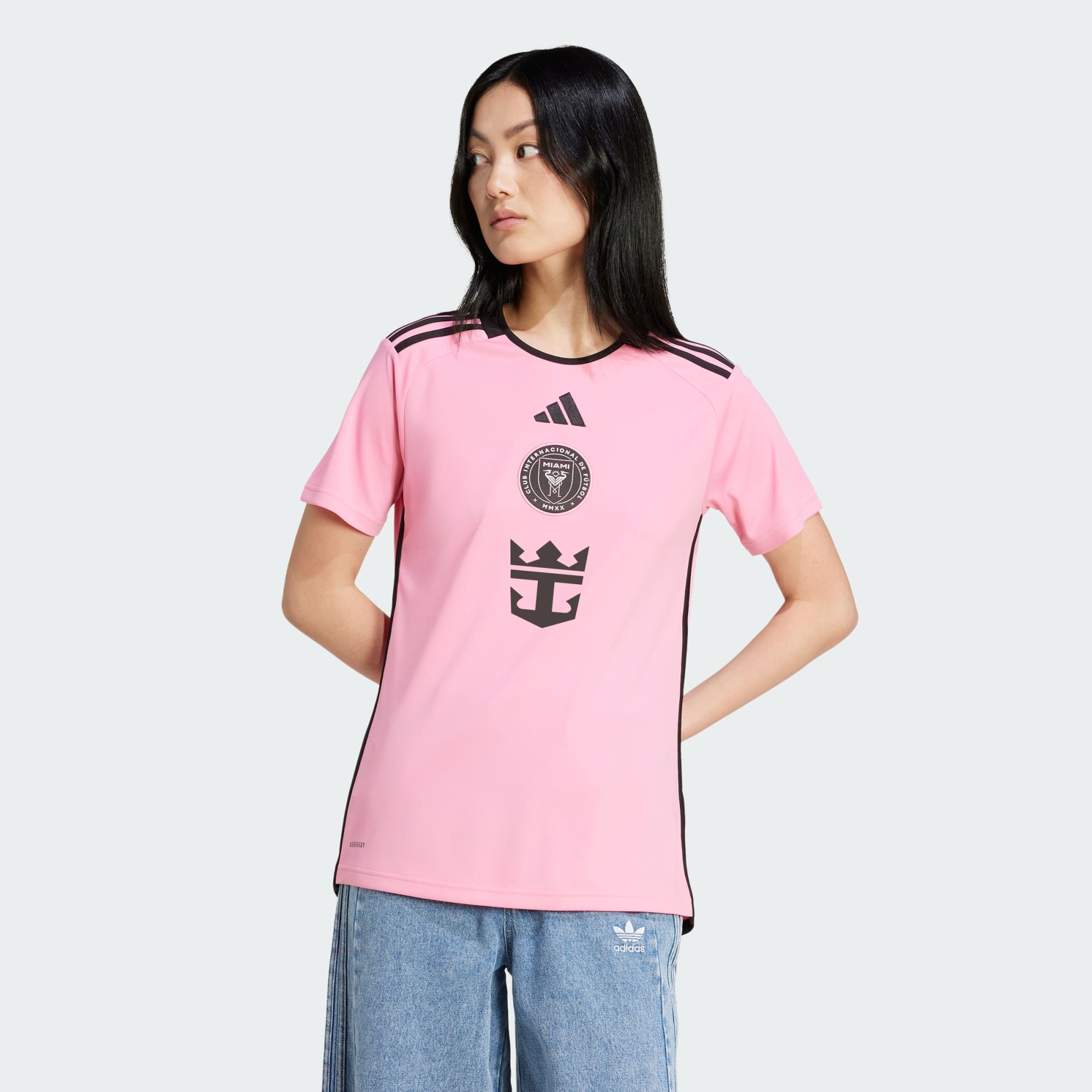 Proud. Passionate. Pink. This adidas Inter Miami CF jersey stands out in the club's signature home colors. Contributing to the clean, classy design, the team badge and 3 Bar Logo move to the center. AEROREADY wicks moisture to keep soccer fans comfortable. The back neck signoff displays the team's aspirational motto, "Freedom to Dream."This product is made with 100% recycled materials. By reusing materials that have already been created, we help to reduce waste, reduce reliance on finite resources and reduce the footprint of the products we make.