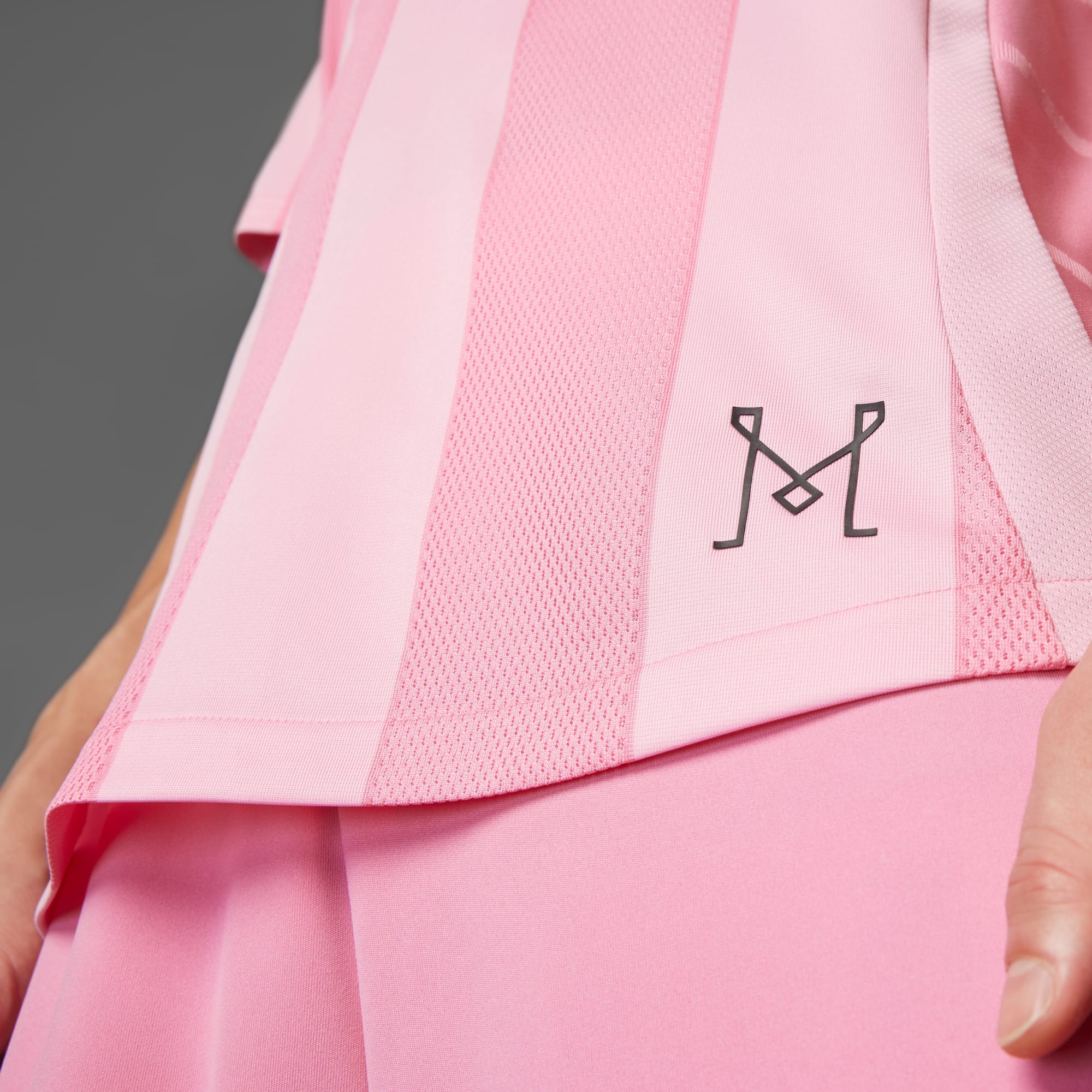 A striped Inter Miami home jersey created for the pitch and made with recycled materials.