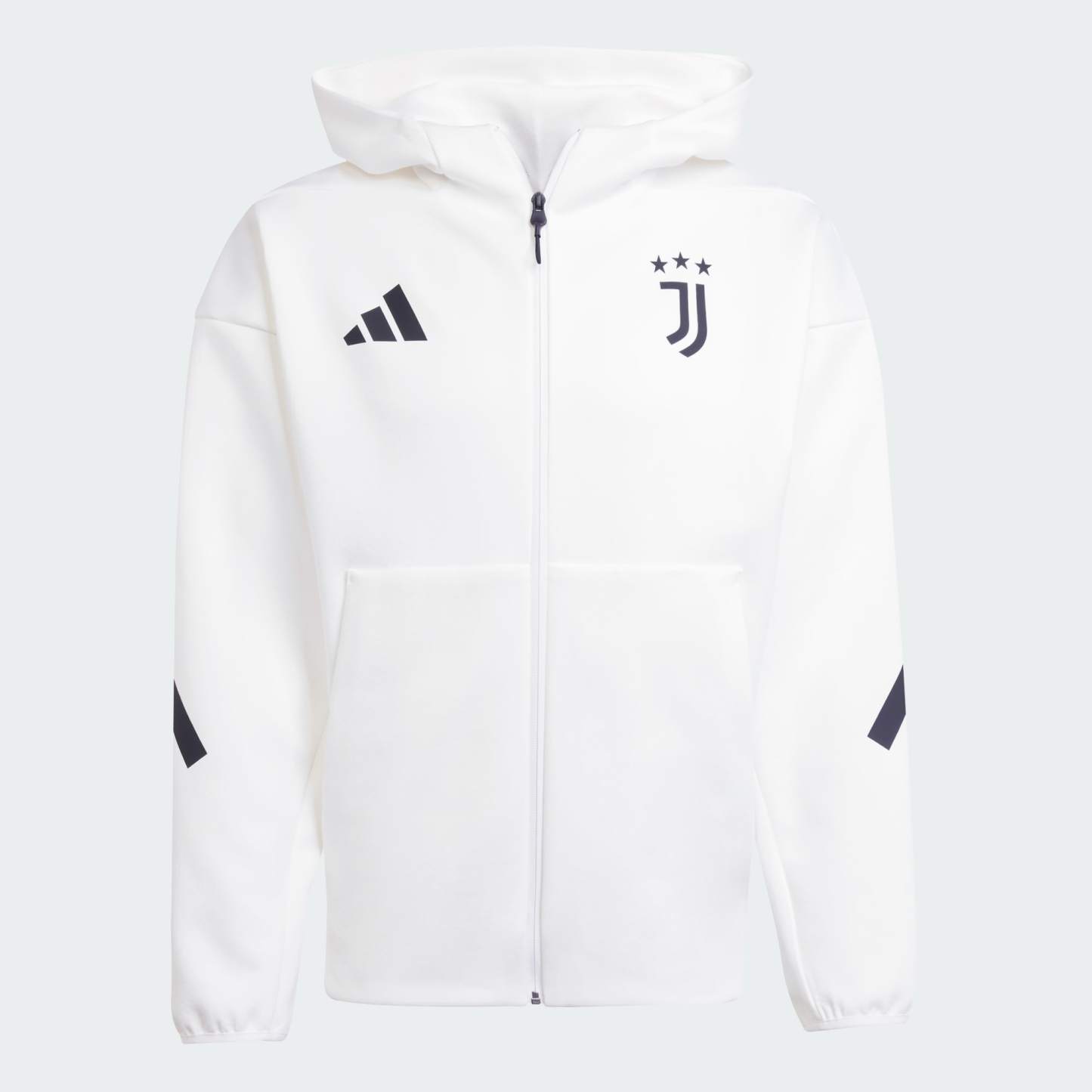 Stay focused on your beautiful game in this adidas soccer jacket. Created to be worn by players as they build up to big matches, it'll keep you comfortable with soft doubleknit fabric. On top of the spacious hood, a Juventus graphic completes a look that will make the Turin club's fans proud.