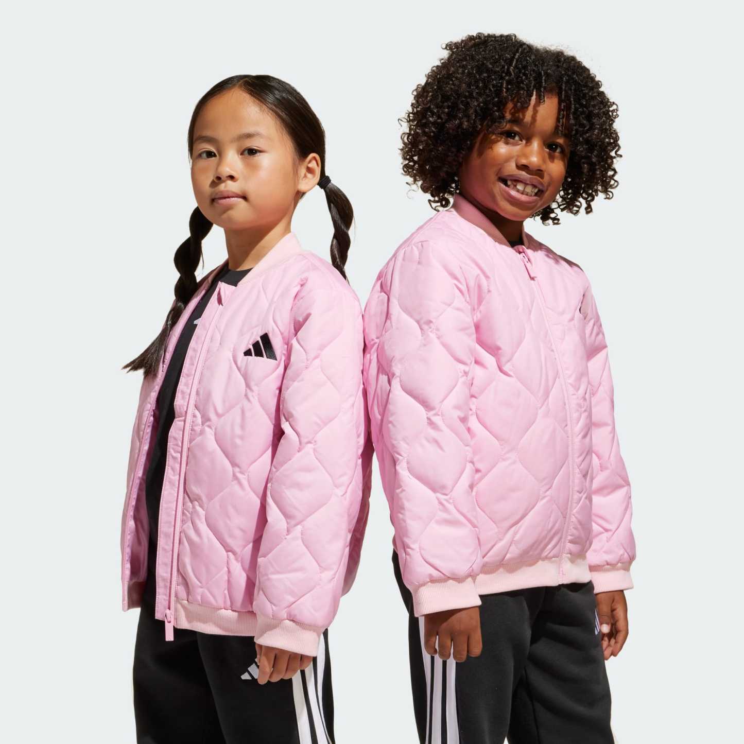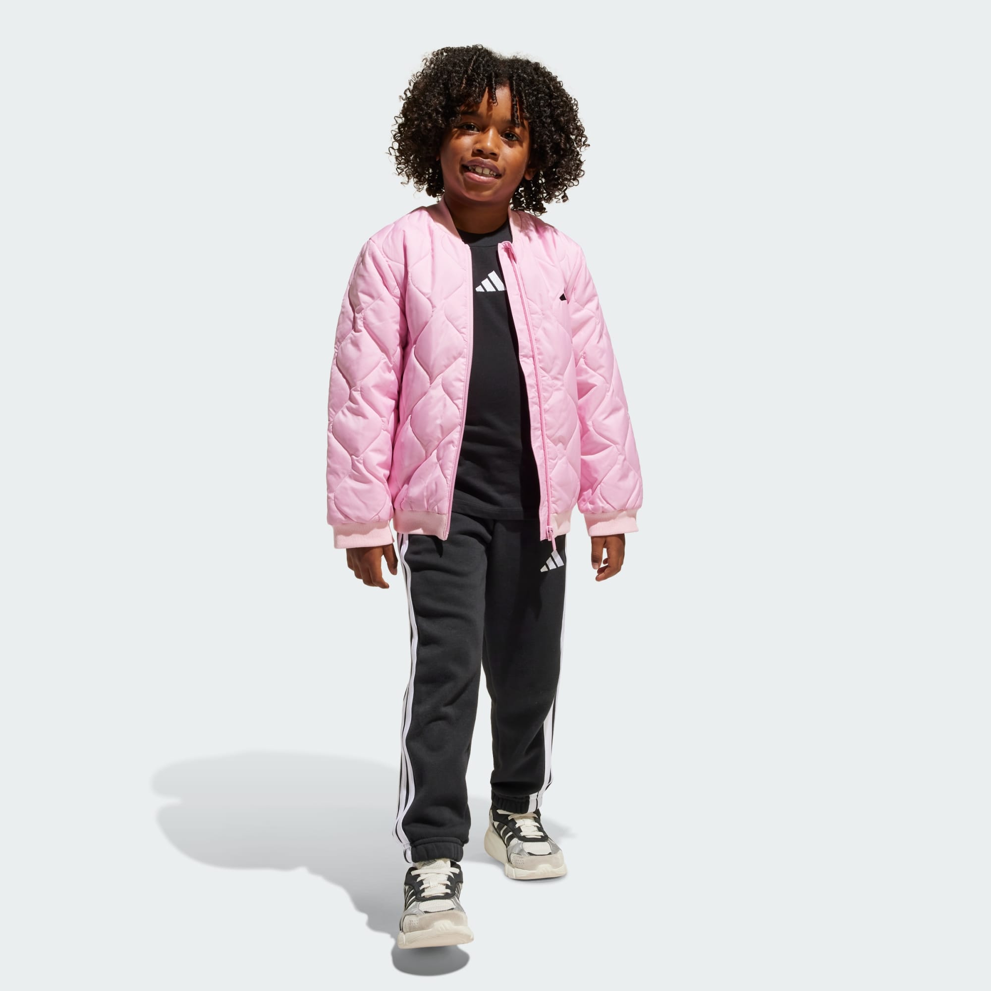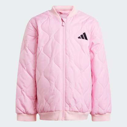 A fun quilted design makes this kids' adidas jacket the outerwear they'll want to wear. It's lightly padded to keep them cozy as they discover new paths and play in the park, with a water-repellent finish to keep them dry in light rain. Zip pockets securely stash treasures they find along the way.This product is made with 100% recycled materials. By reusing materials that have already been created, we help to reduce waste and our reliance on finite resources and reduce the footprint of the products we make.