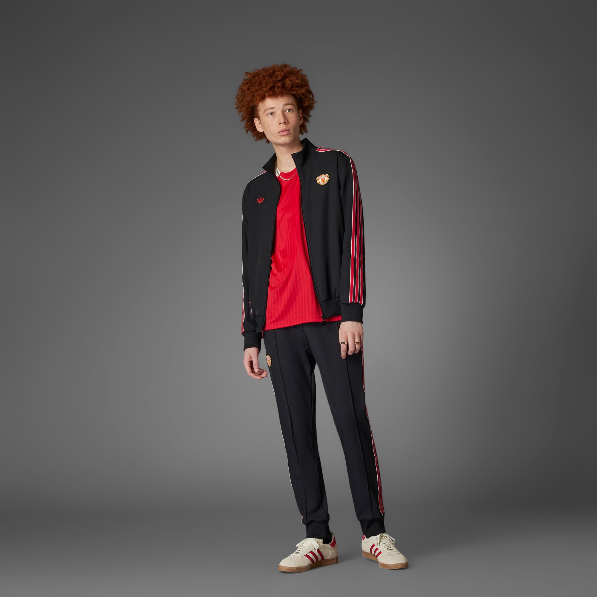 Few decades influenced soccer fashion like the 1980s. This Manchester United track top celebrates the super-casual terrace culture that added style to match days. Adopting a classic adidas silhouette, it pairs a Trefoil and vintage club badge. The soft twill build, ribbed stand-up collar and zip pockets make it perfect for modern-day adventures.This product is made with at least 70% recycled materials. By reusing materials that have already been created, we help to reduce waste and our reliance on finite resources and reduce the footprint of the products we make.