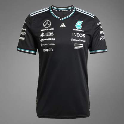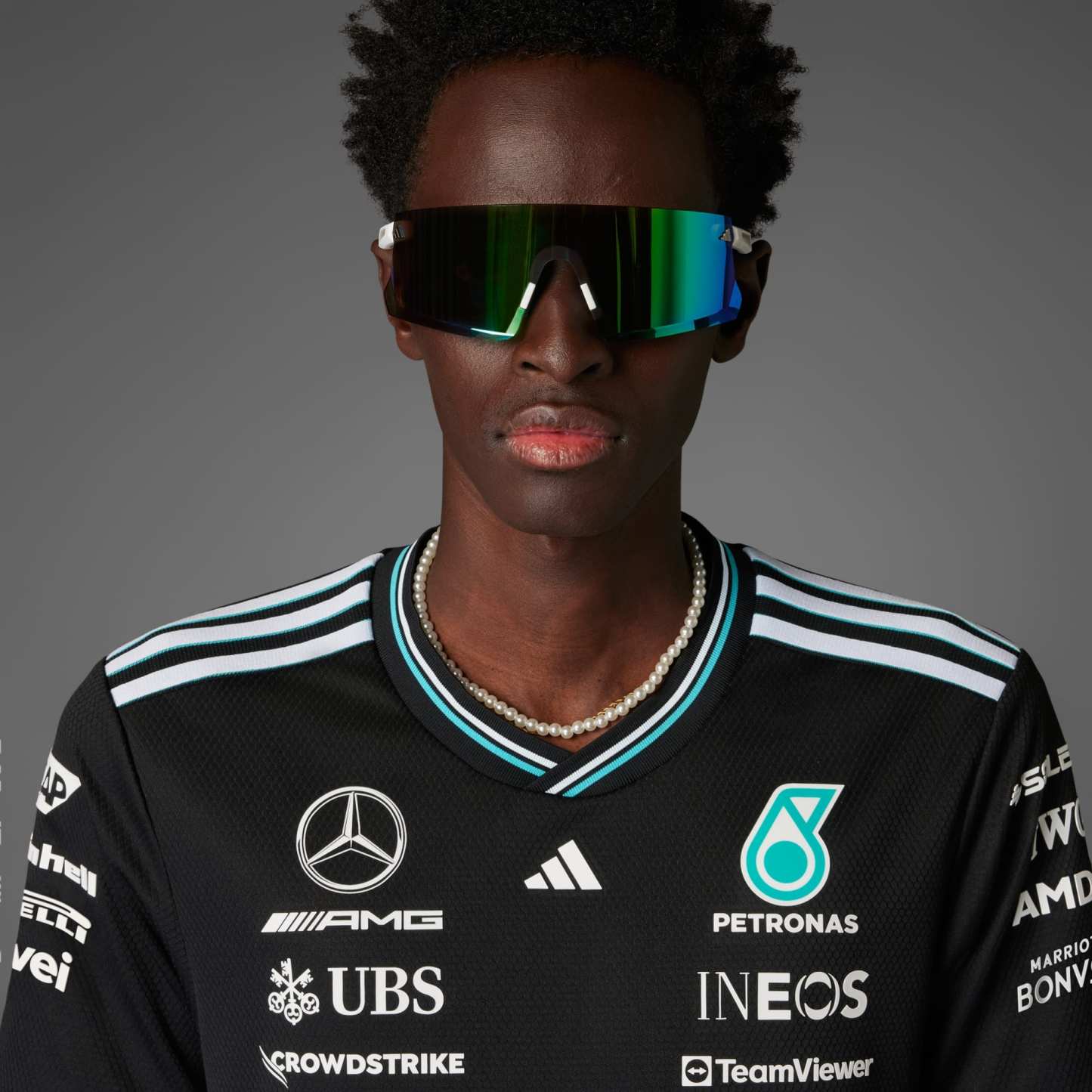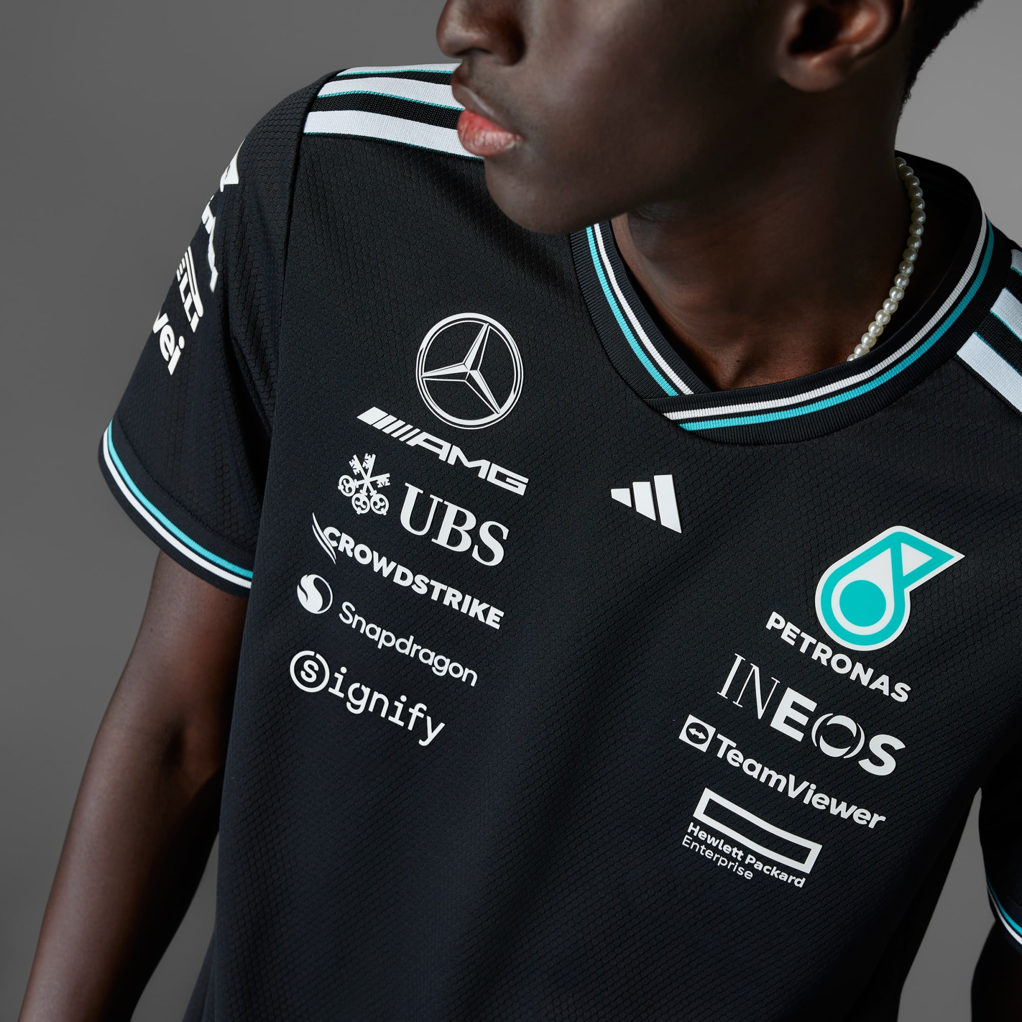Look and feel like you're ready to take the wheel in this driver jersey from adidas. Built just like the ones worn on race day, this jersey features AEROREADY to manage moisture, providing both outstanding performance and elevated comfort. Mercedes - AMG Petronas Formula One Team logo branding and sponsor logos make the look authentic, while 3-Stripes on the shoulders and the 3 Bar Logo on the chest offer a signature adidas signoff.This product is made with 100% recycled materials. By reusing materials that have already been created, we help to reduce waste and our reliance on finite resources and reduce the footprint of the products we make.