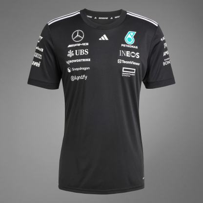 Look and feel like you're ready to take the wheel in this driver jersey from adidas. Built just like the ones worn on race day, this jersey features AEROREADY to manage moisture, providing both outstanding performance and elevated comfort. Mercedes - AMG Petronas Formula One Team logo branding and sponsor logos make the look authentic, while 3-Stripes on the shoulders and the 3 Bar Logo on the chest offer a signature adidas signoff.This product is made with 100% recycled materials. By reusing materials that have already been created, we help to reduce waste and our reliance on finite resources and reduce the footprint of the products we make.