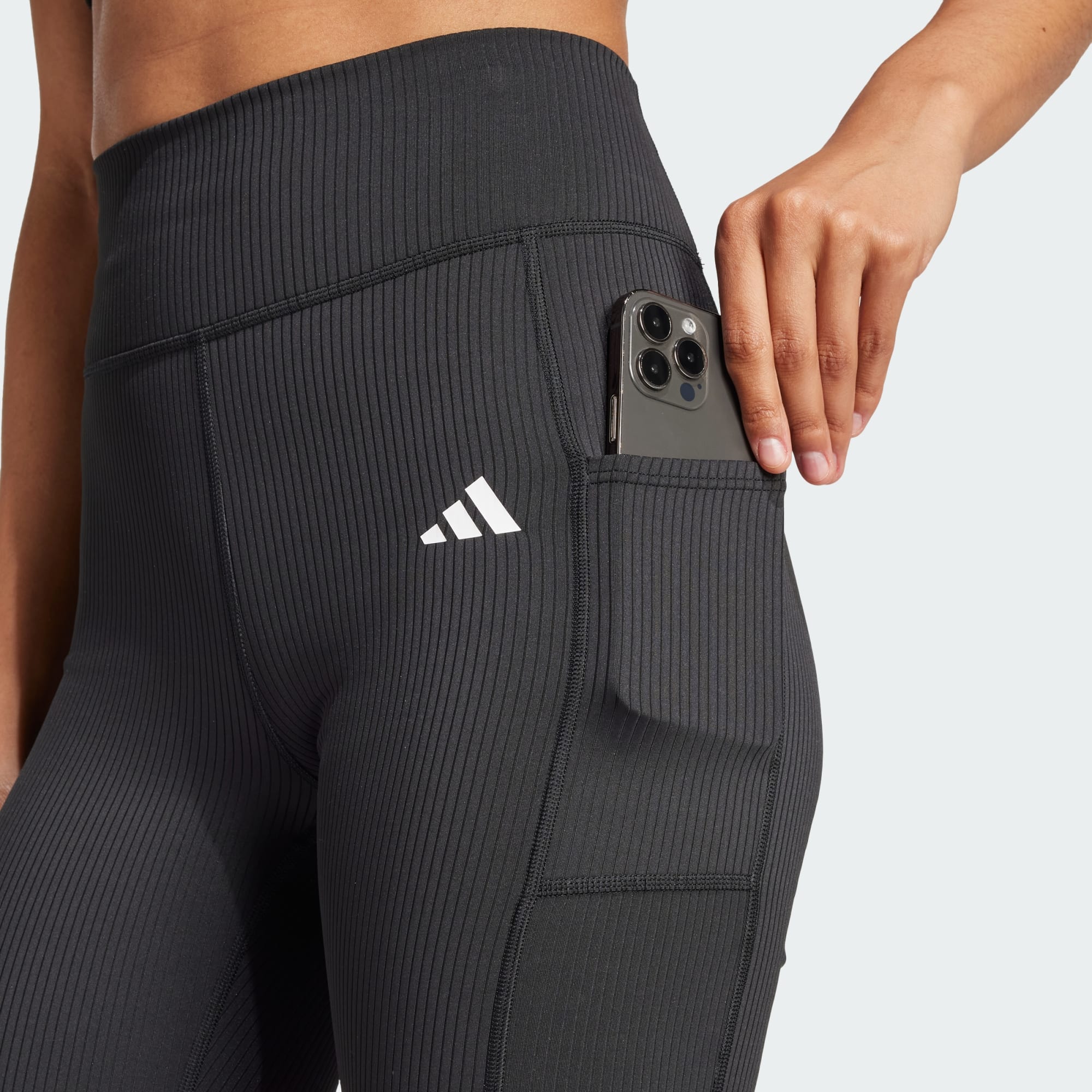 Level up your workout in these adidas short leggings. Sleek, four-way stretch fabric moves with you through every squat, lunge and sprint, powered by lasting LYCRA庐 SPORT. The signature thigh pocket lets you stash your phone or keys, keeping essentials close through your entire training session. This product is made with at least 70% recycled materials. By reusing materials that have already been created, we help to reduce waste and our reliance on finite resources and reduce the footprint of the products we make.
