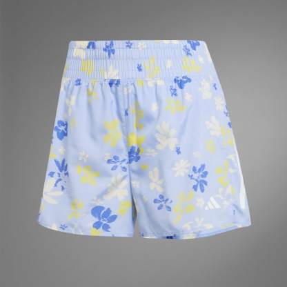 Whether you're pounding the pavement or hitting the treadmill, step into the spotlight in these adidas running shorts. The lightweight, breathable fabric and high-rise waist keep you covered and comfortable. An allover floral print is unapologetically feminine. CLIMACOOL wicks and disperses sweat for cool, dry and distraction-free performance.CLIMACOOL helps you manage sweat with materials that wick and manage sweat quickly. Its fast-dry fibers give you a fresh-skin feel.