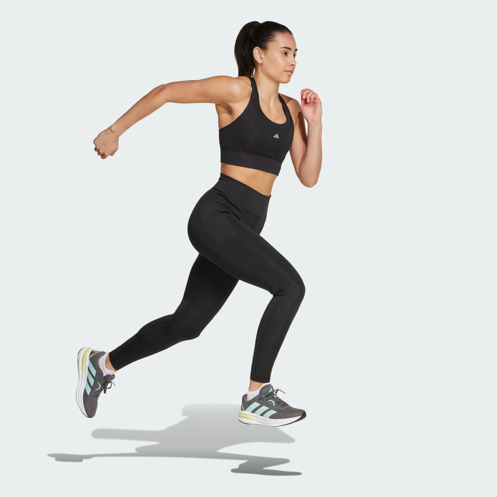 These sleek, form-fitting running leggings from adidas help you stay dry and in the zone mile after mile. AEROREADY handles moisture while the Adiflex fabric feels cool against your skin even when you step up your pace. The high-rise waistband delivers a secure fit that eliminates distracting slippage. Stash your keys, card and phone in the side pockets and find your stride.This product is made with at least 70% recycled materials. By reusing materials that have already been created, we help to reduce waste and our reliance on finite resources and reduce the footprint of the products we make.
